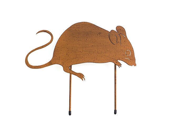 Beetstecker MAUS 16x30cm Rostoptik Edelrost Metall Gartenstecker Ratte