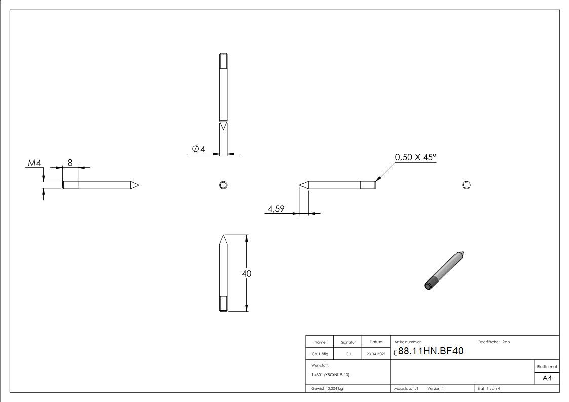 Befestigungsmaterial für Hausnummern mit M4 Gewinde, V2A