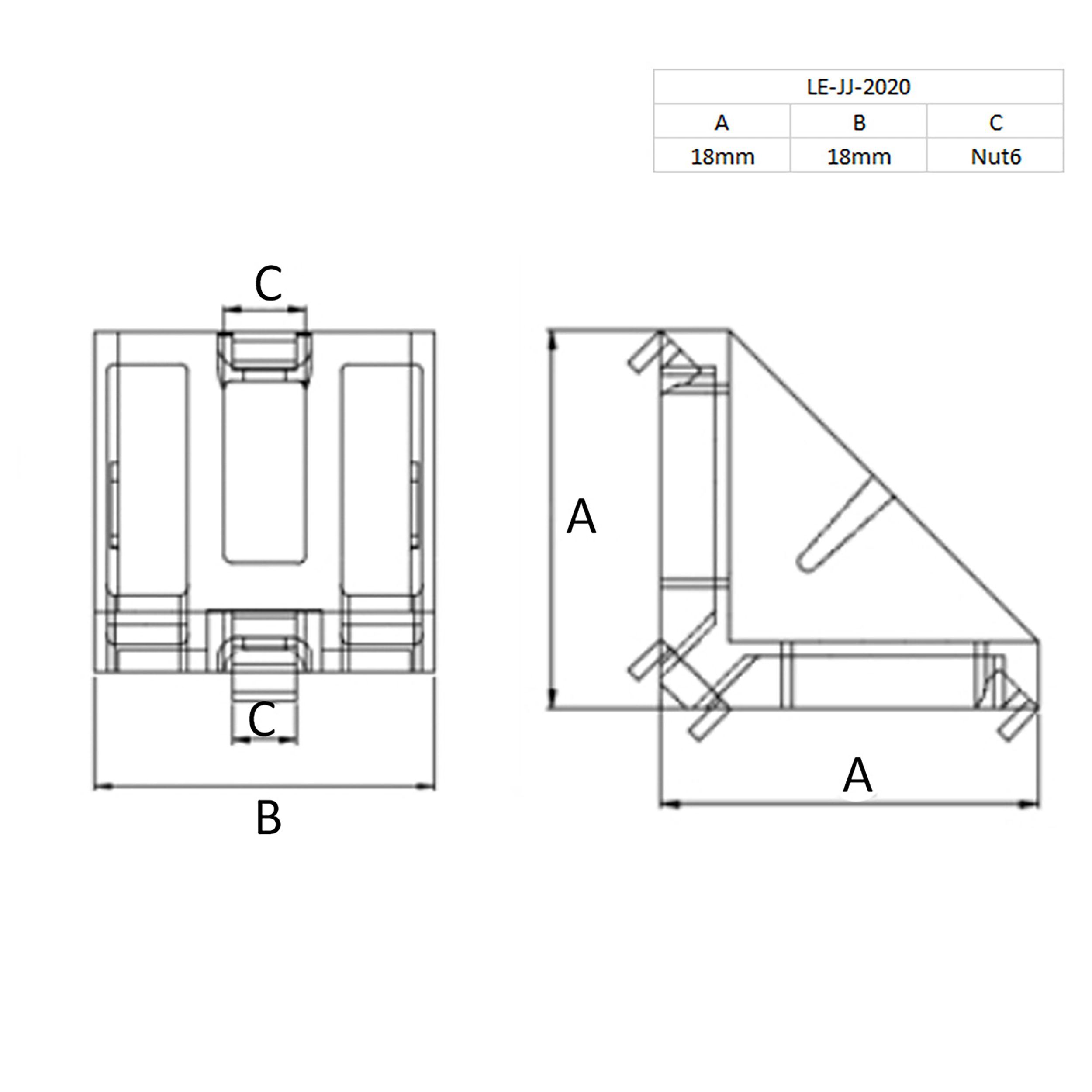 Befestigungswinkel ink. Schrauben und Nutensteine Nut 6 für Aluprofil 20-er