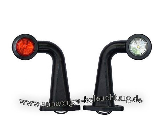 Begrenzungsleuchten am abgewinkelten Gummiarm LED das Paar Umrissleuchten das Paar (2Stck.) am Gummiarm ( LED 12V-30V ) wird mit Leuchtmittel ausgeliefert, ( LED ) mit roter und weißer Lichtstrahl LED E-Prüfzeichen Wasserdicht Maße:H 180mm 12V 24V zum Auswahl Betrieb 12-30V, (Kann 12V und 24V benutz