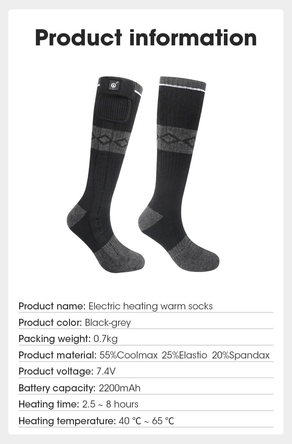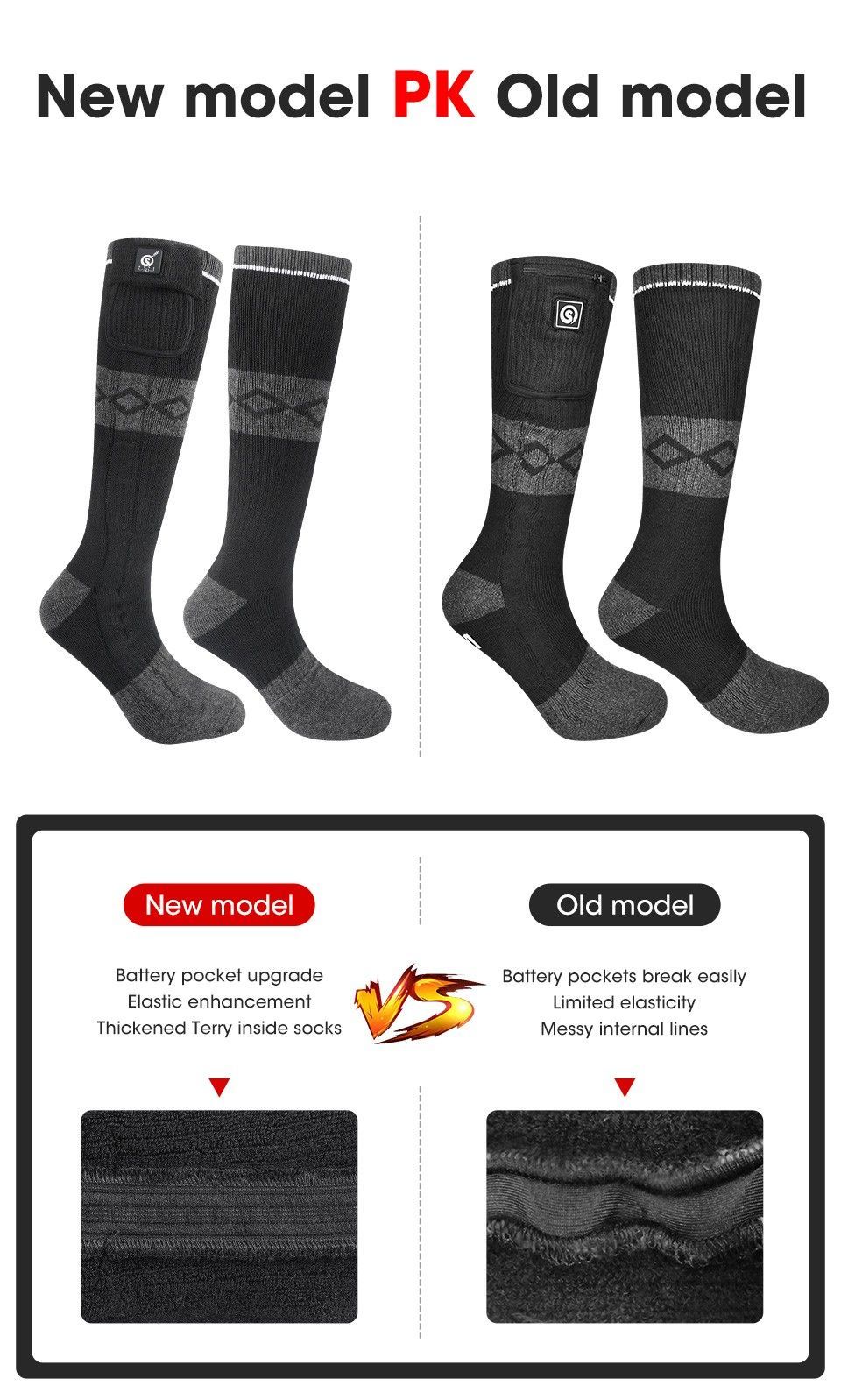 Beheizbare Socken, Elektrische Warme Socken Wiederaufladbare Skifahren Camping