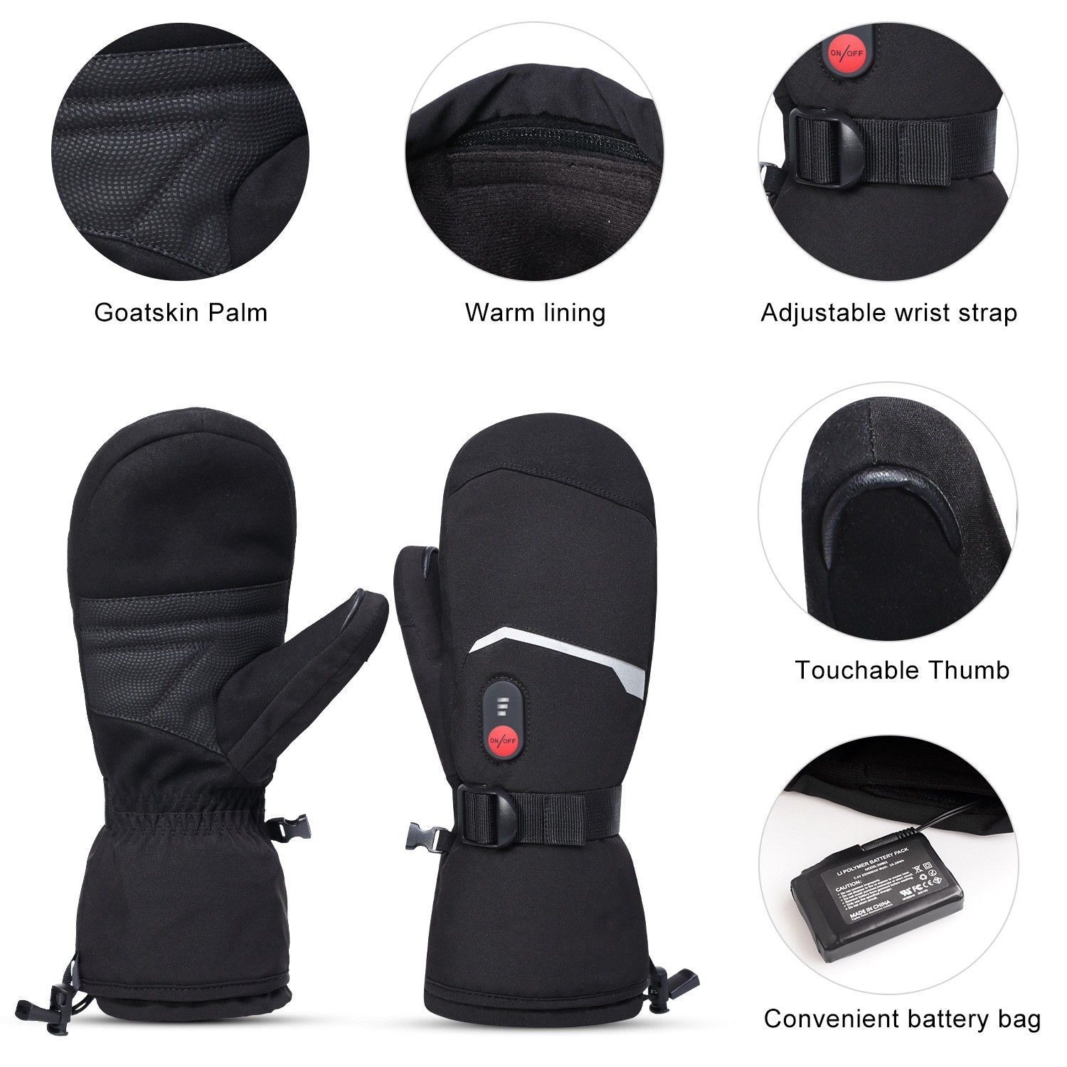 Beheizte Handschuhe für Herren und Damen, Palm Lederhandschuhe Heated Ski