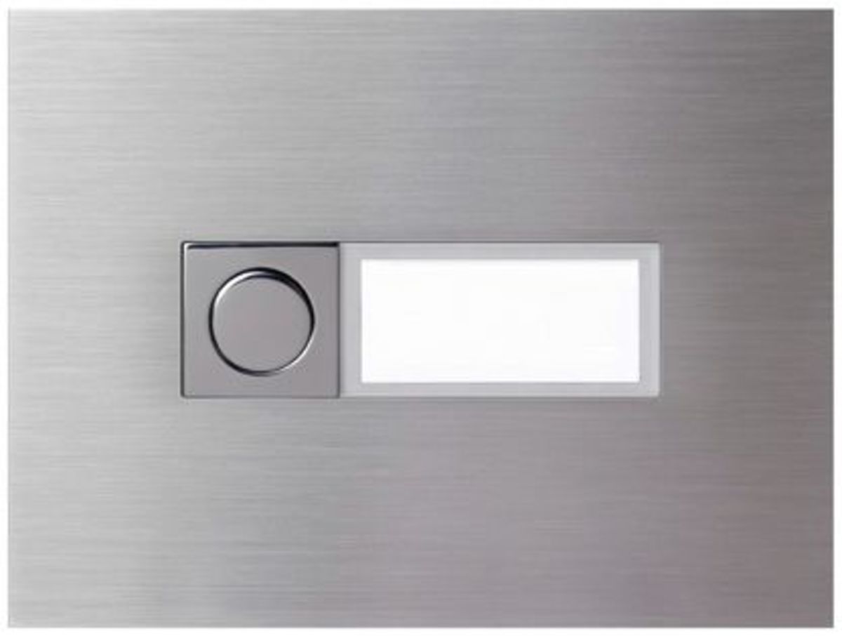 > Highlights - Eine Ruftasten mit Beschriftungsfeld (mittig) - Beschriftungsfeld beleuchtet - Ruftaste glanzpoliert - Frontblende: Edelstahl (matt gebürstet) - Materialstärke: 1,5 mm - Maße (H x B): 90 x 120 mm > Produkttyp - TK Anlagen Modul - ear-Kategorie (ElektroG): irrelevant