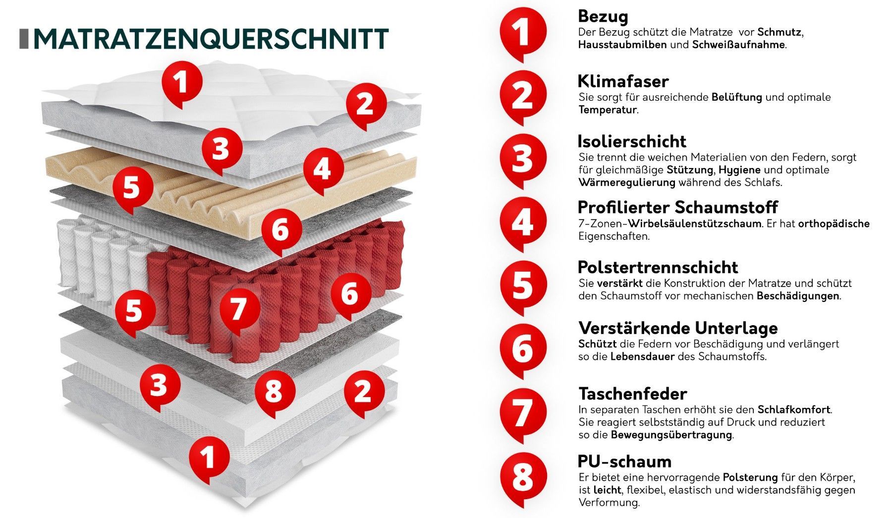 Beidseitige Federkernmatratze Gemini 18 cm Taschenfederkernmatratze Härtegrad: H3