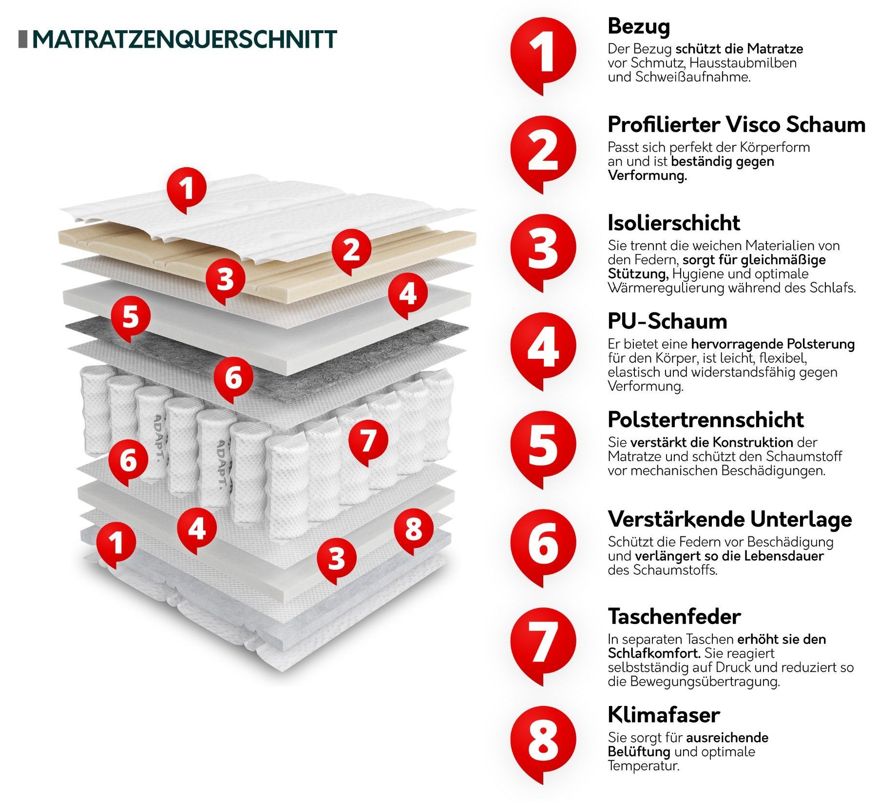 Beidseitige Federkernmatratze Termopur 20 cm Beidseitig H3