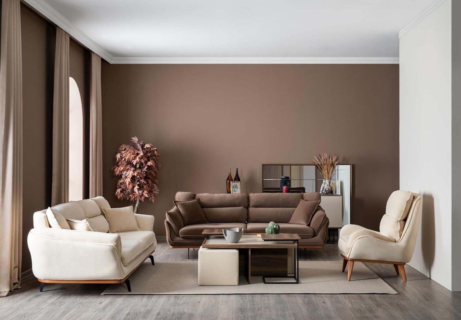 Beige Couch Polster Sofa Möbel Couchen Wohnzimmer Dreisitzer Textil Stoff