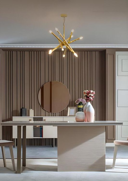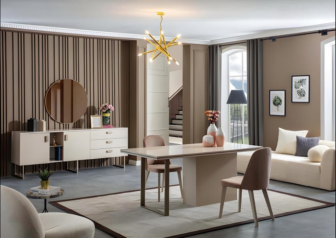 Beige Esstischset 4 x stühle tische küche luxusmöbel anrichte spiegel