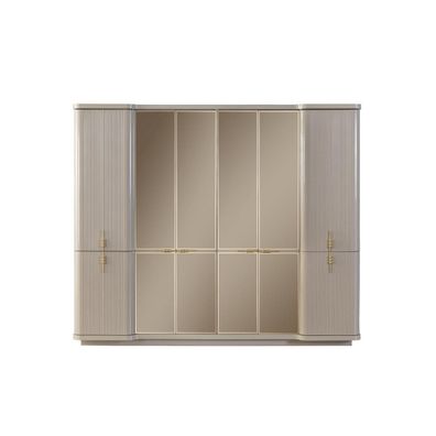 Beiger Spiegeltürenschrank Designer Schlafzimmer Schränke Holzmöbel