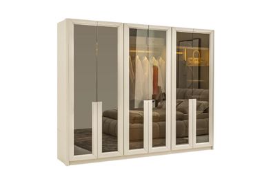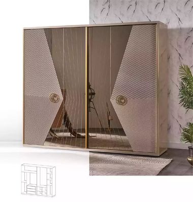 Kleiderschrank Spiegeltür Wardrobe Stoffschrank Beige Gold Schlafzimmer