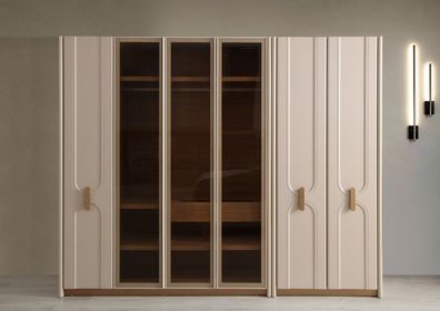 Stilvoller Beiger Glasschrank Stauraumschrank Schlafzimmer Schrank