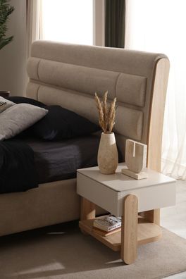 Stylischer Beiger Nachttisch Designer Schlafzimmer Holz Möbel