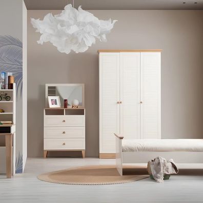 Beiger Kleiderschrank Garderobenschrank Schlafzimmer Holzschrank Möbel