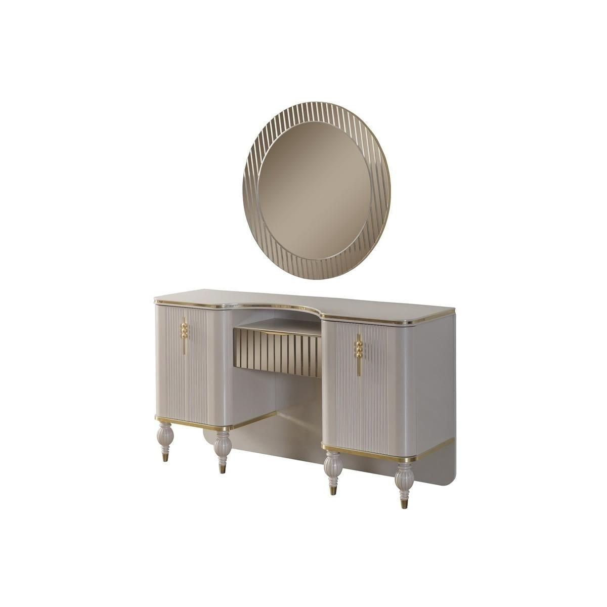 Beiger Schminktisch Designer Frisiertisch Kosmetiktisch Konsole Spiegel