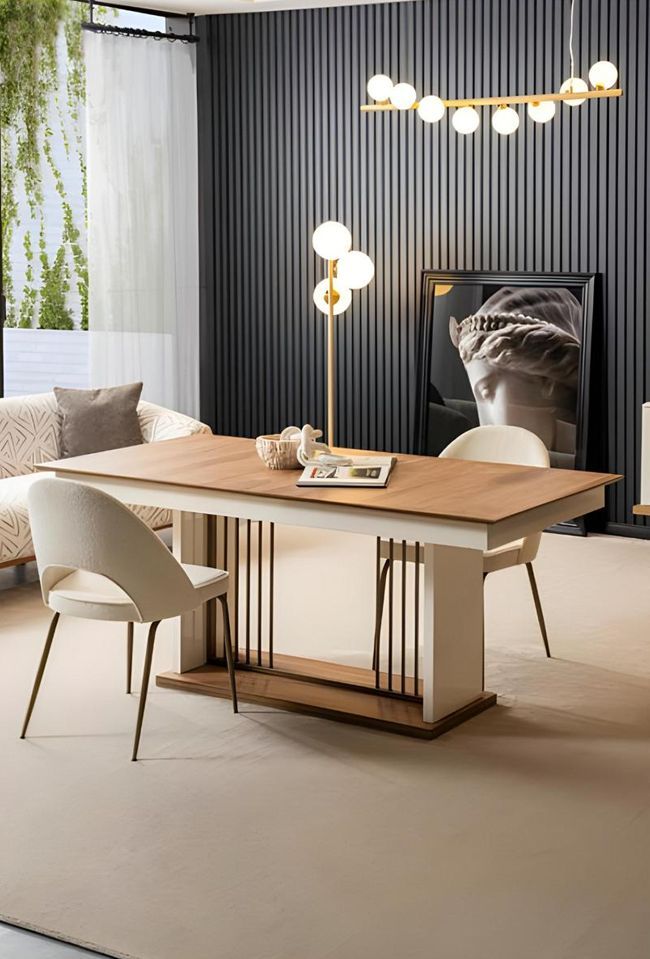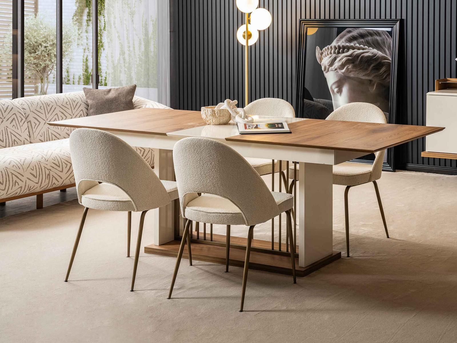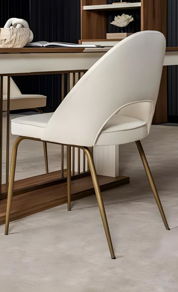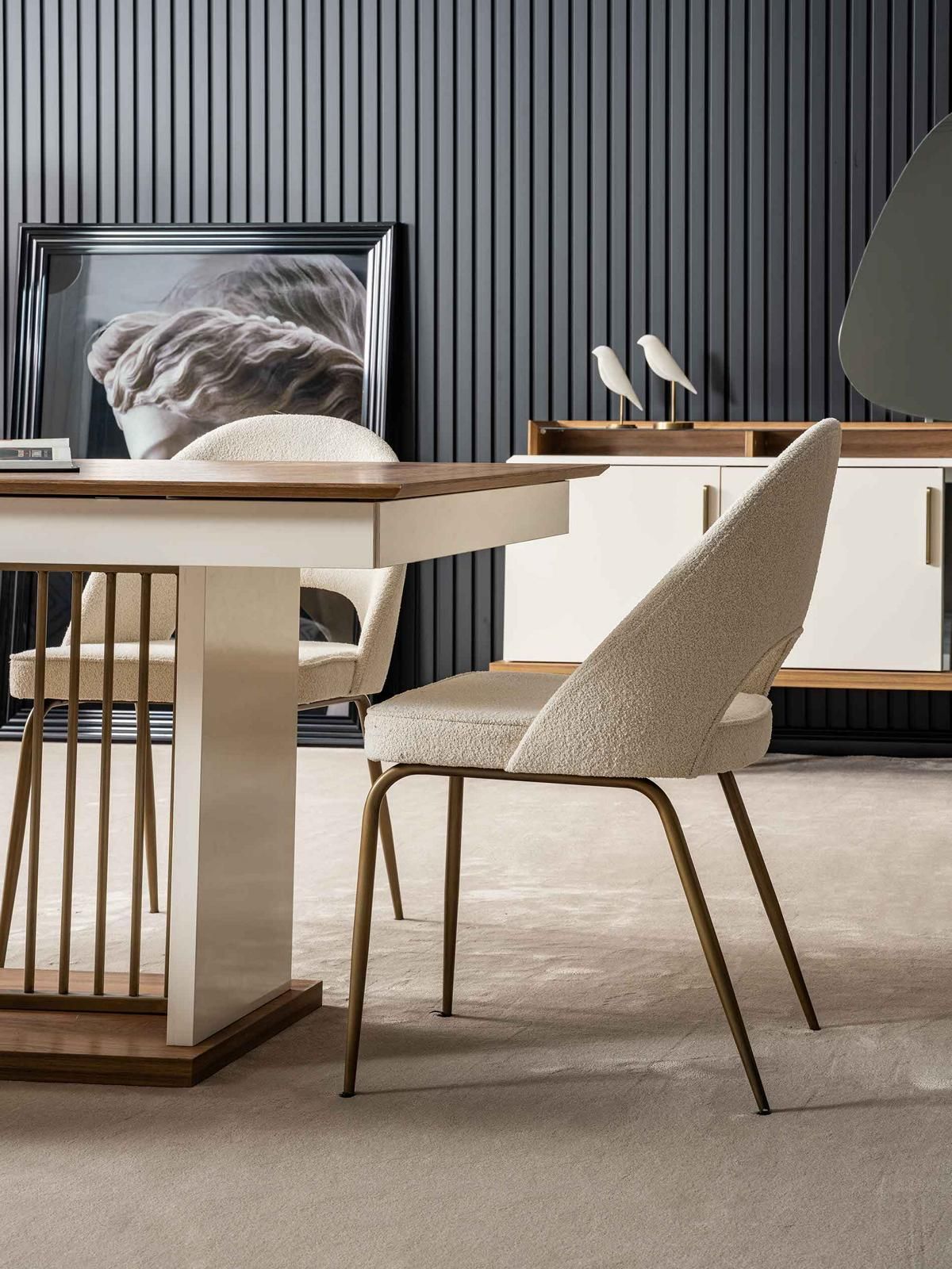 Beiges Esszimmer Set Rechteckiger Holztisch Designer 4x Polsterstühle