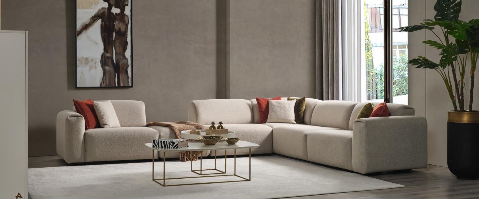 Beiges Wohnzimmer Sofa Designer Ecksofa L-Form Luxus Couch Polstermöbel