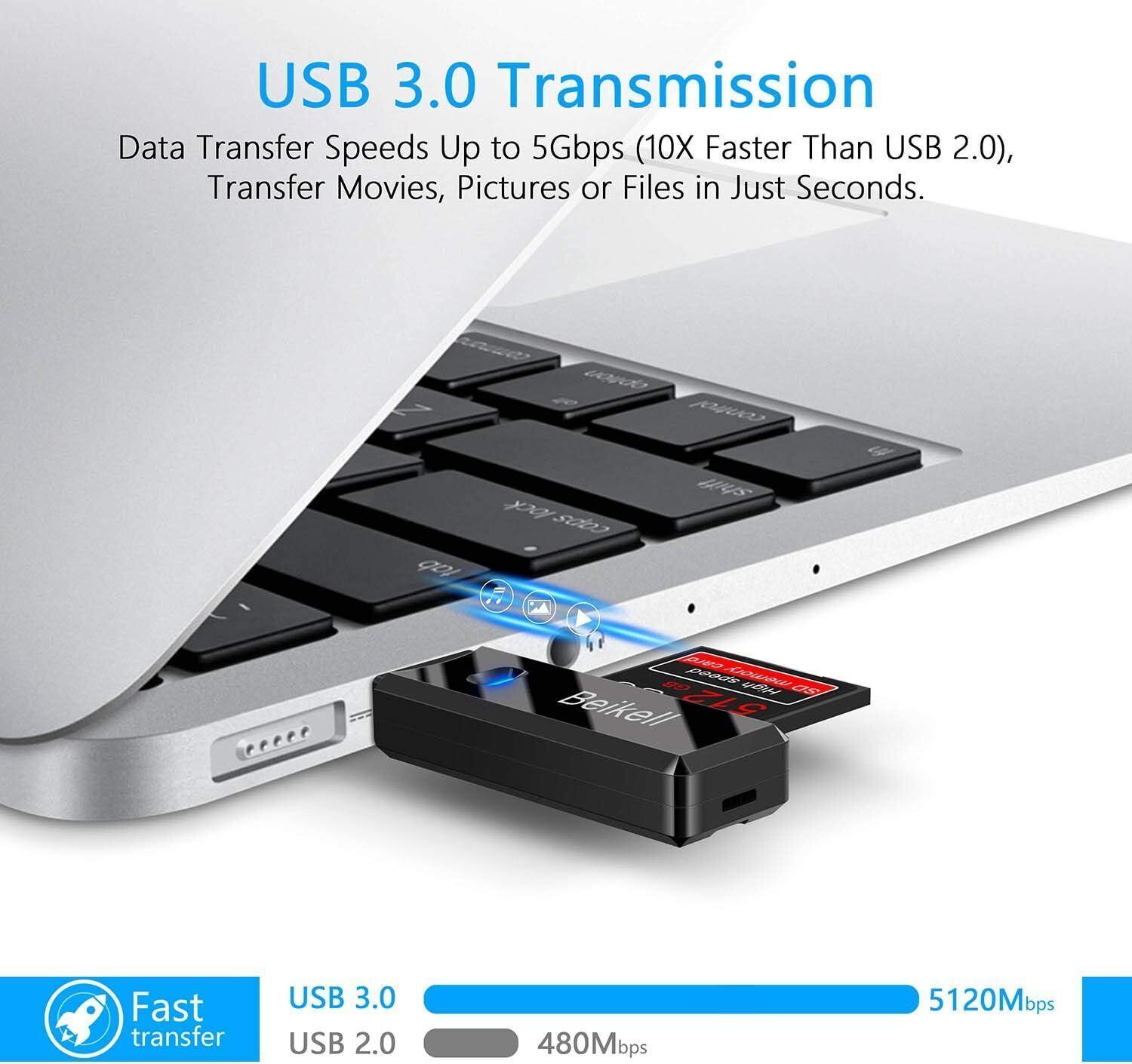 Beikell USB 3.0 Kartenleser Highspeed Kartenlesegerät - Unterstétzt SD/Micro