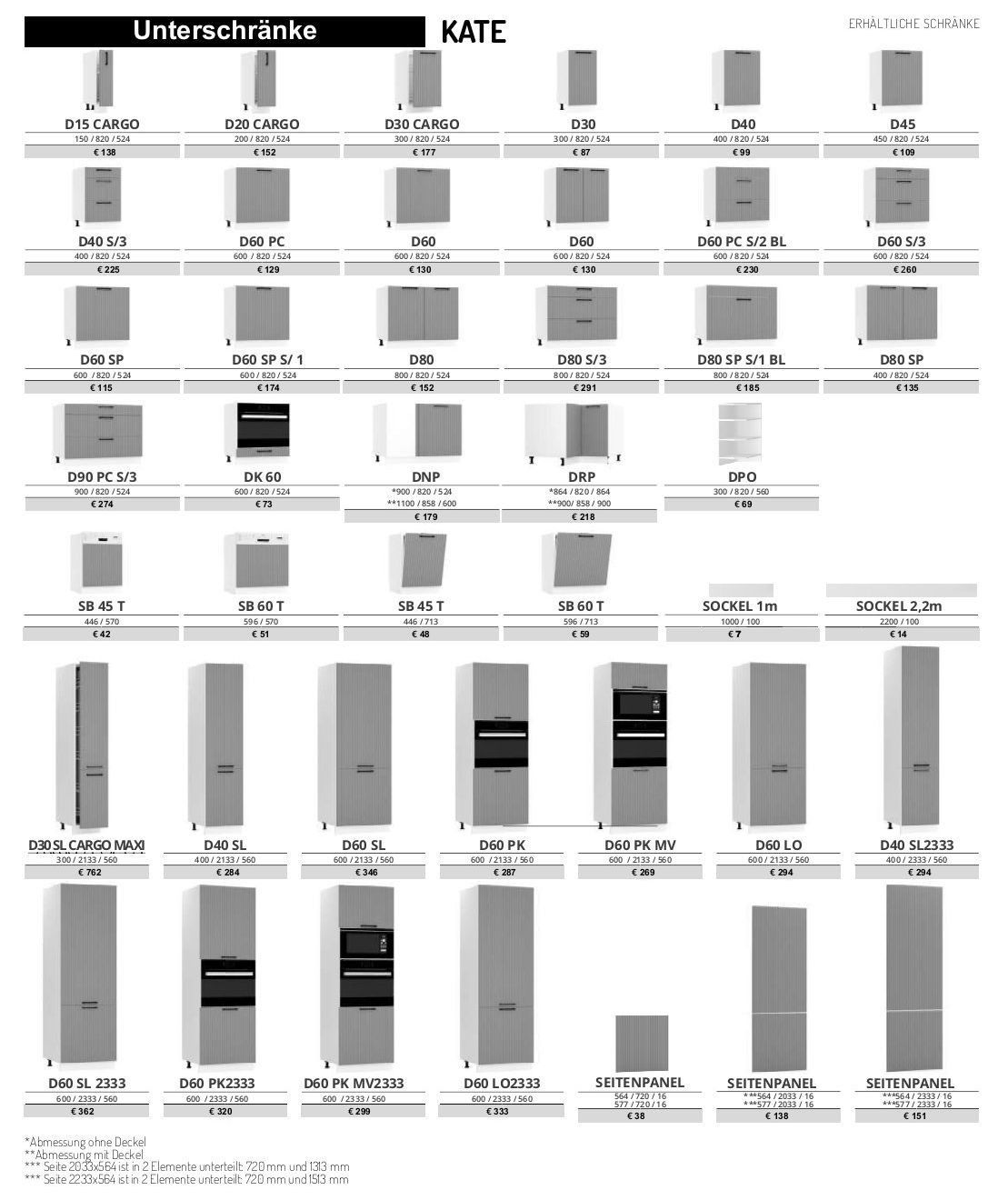 Beispiel Küche Trend Line variabel stellbar NEU & Schnell Fronten: Kate schwarz matt hellgrau matt Griffe Edehlstahl Korpus und Sockel: weiss Der Preis versteht sich für Musterküche unten beschrieben ohne E-Geräte, Arbeitsplatten, Spüle und Dekoration. Griffe und Sockel sind im Preis enthalten.