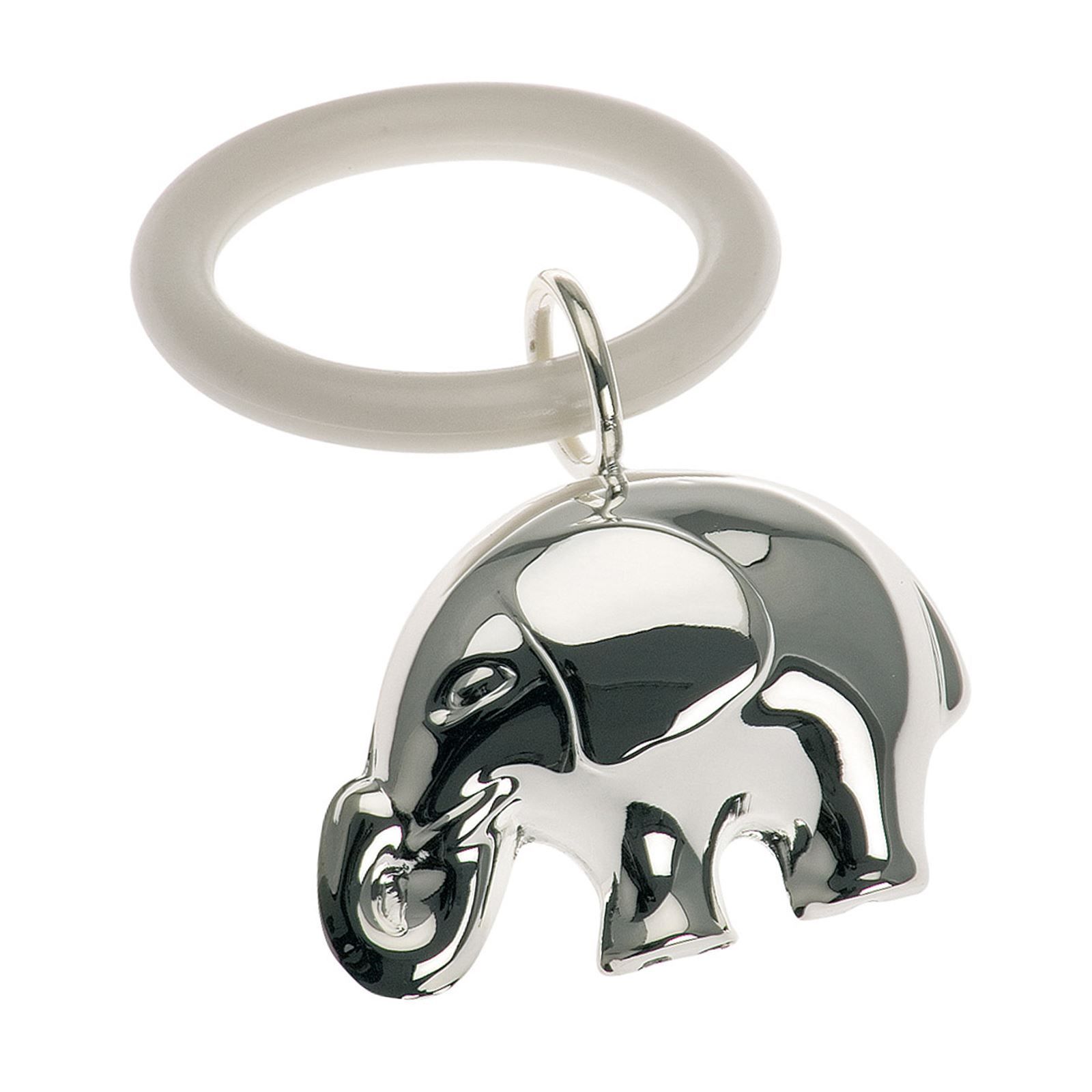 Beißring für Kleinkinder - Zahnungshilfe mit versilbertem Motiv-Anhänger Elefant