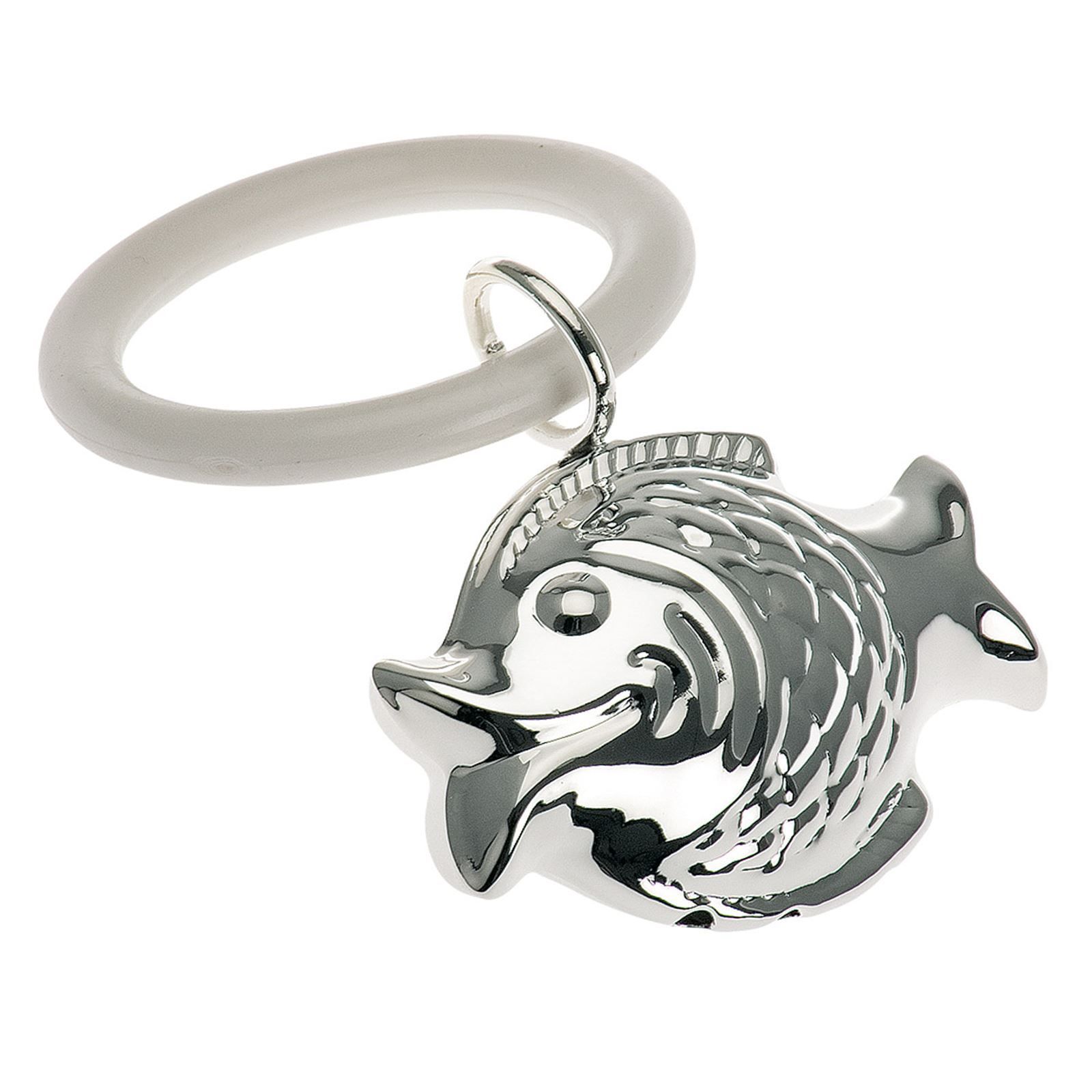 Beißring für Kleinkinder - Zahnungshilfe mit versilbertem Motiv-Anhänger Fisch