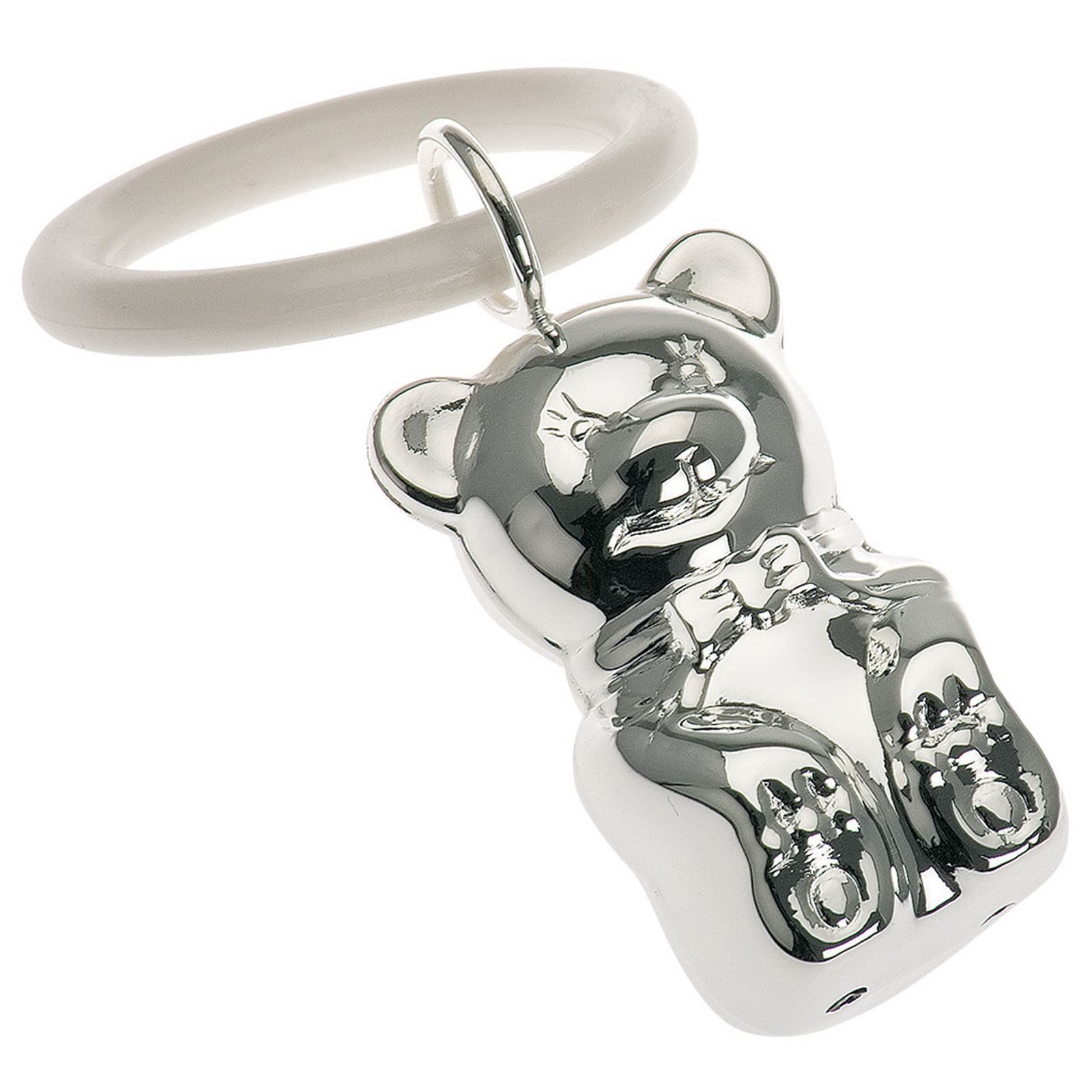 Beißring für Kleinkinder - Zahnungshilfe mit versilbertem Motiv-Anhänger Teddy
