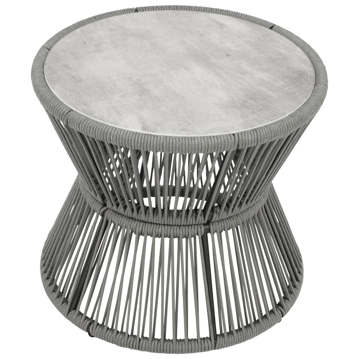 Beistelltisch 56cm rund, Stahl + Rope mit Glasplatte