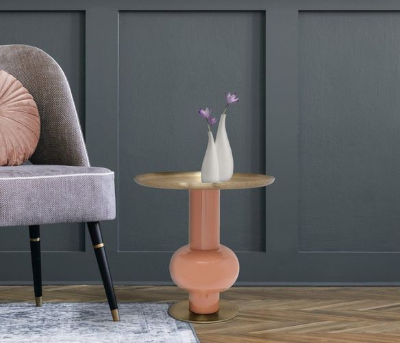 Beistelltisch Art Deco Tisch Couchtisch Gold Abstelltisch Blumentisch rund Metall