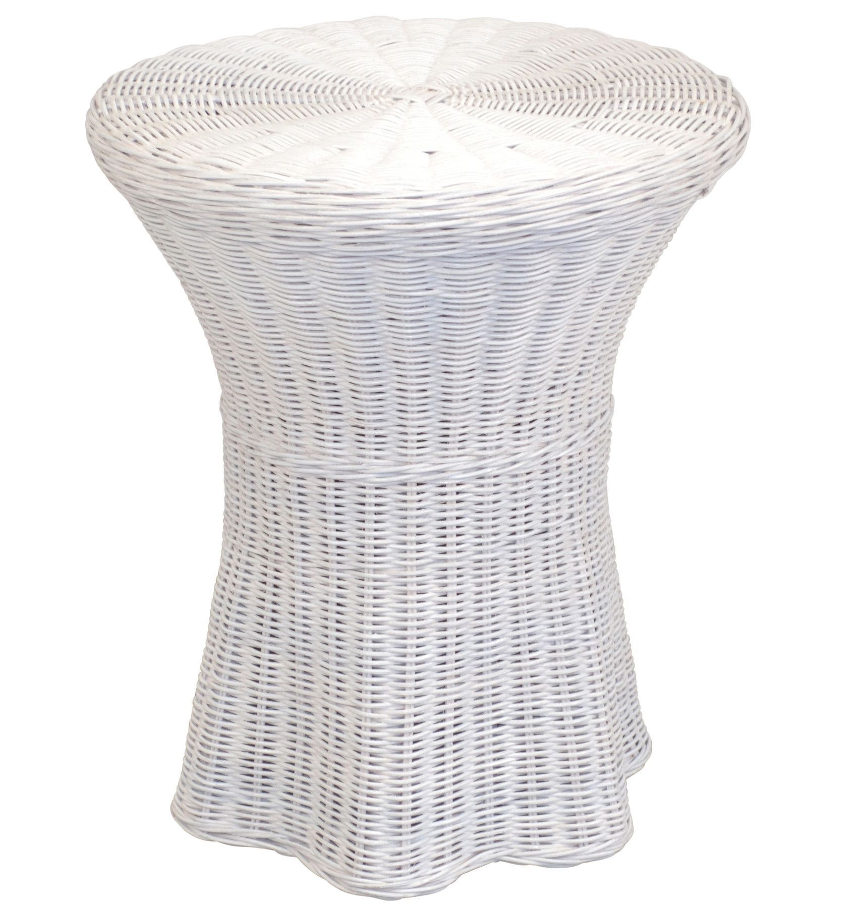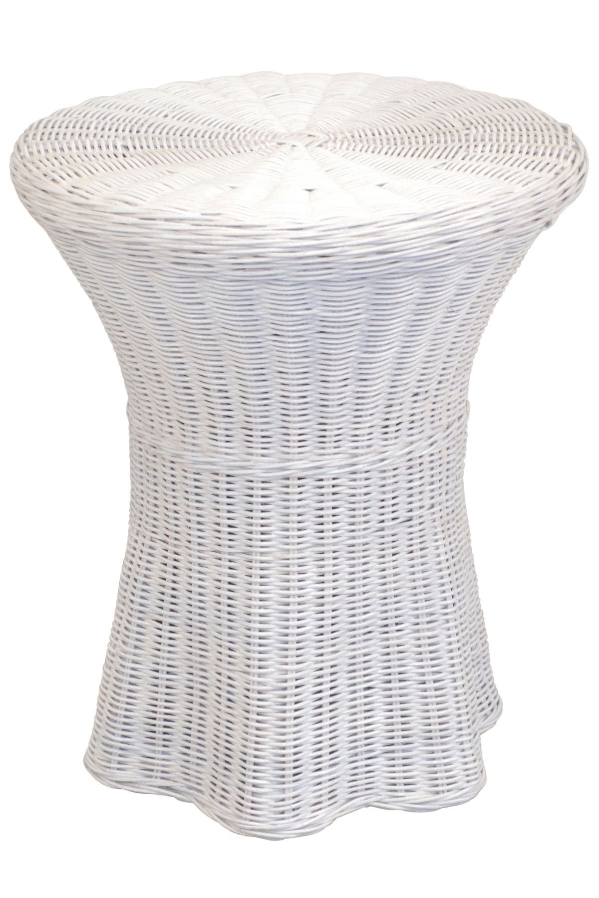 Beistelltisch "Babett" aus Rattan, handgeflochten, weiß