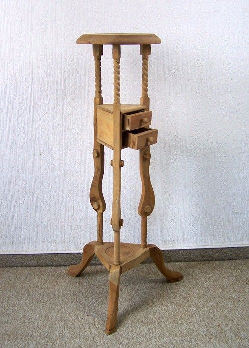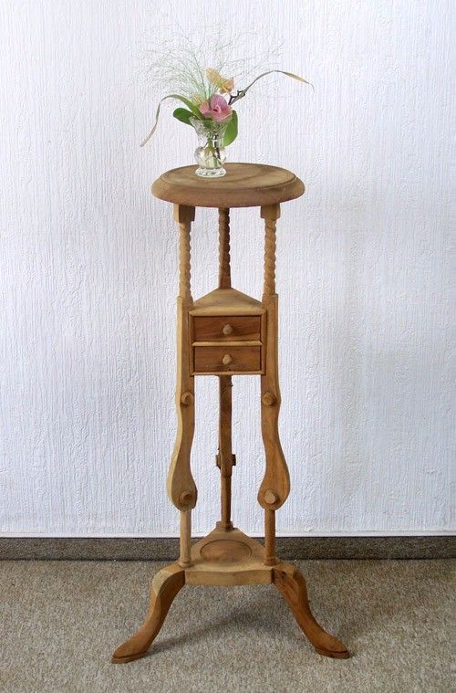 Dieses feine Möbelstück ist vielseitig verwendbar, z.B. als Blumenständer, Beistelltisch oder auch als Telefontisch. Viele Details wie die 2 kleinen Schübe, die säulenartigen Verbindungen und die geschwungenen Standbeine ergeben ein tolles Gesamtbild. Hergestellt wurde das Möbelstück aus Mahagoni-Ho