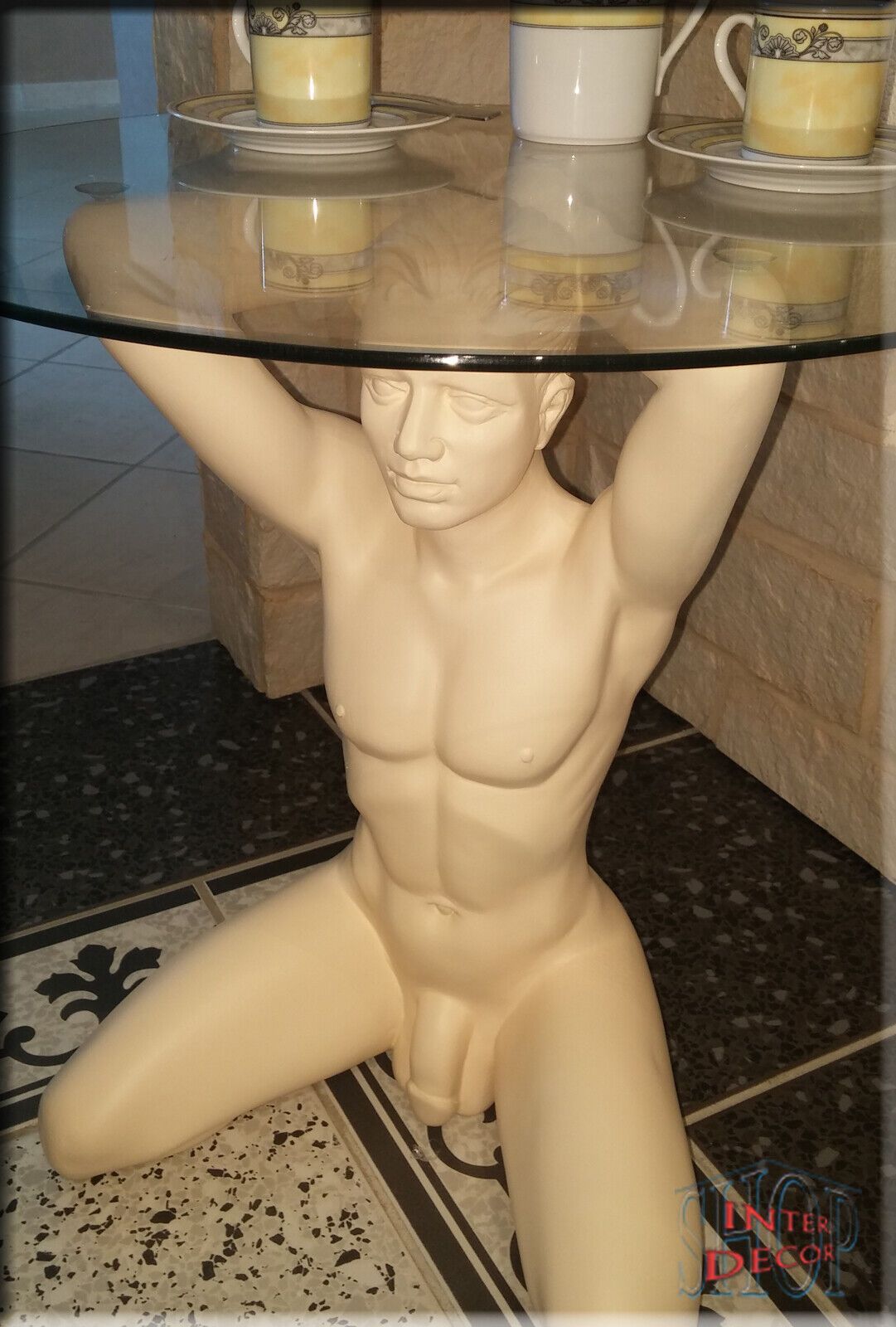 Beistelltisch Couchtisch Glastisch Kaffeetisch Erotik Glas Mann Modern Design