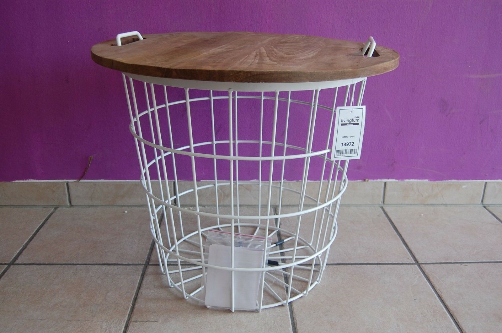 Beistelltisch Couchtisch Jade Metallkorb mit Stauraum Mangoholz 60 cm x 50 cm
