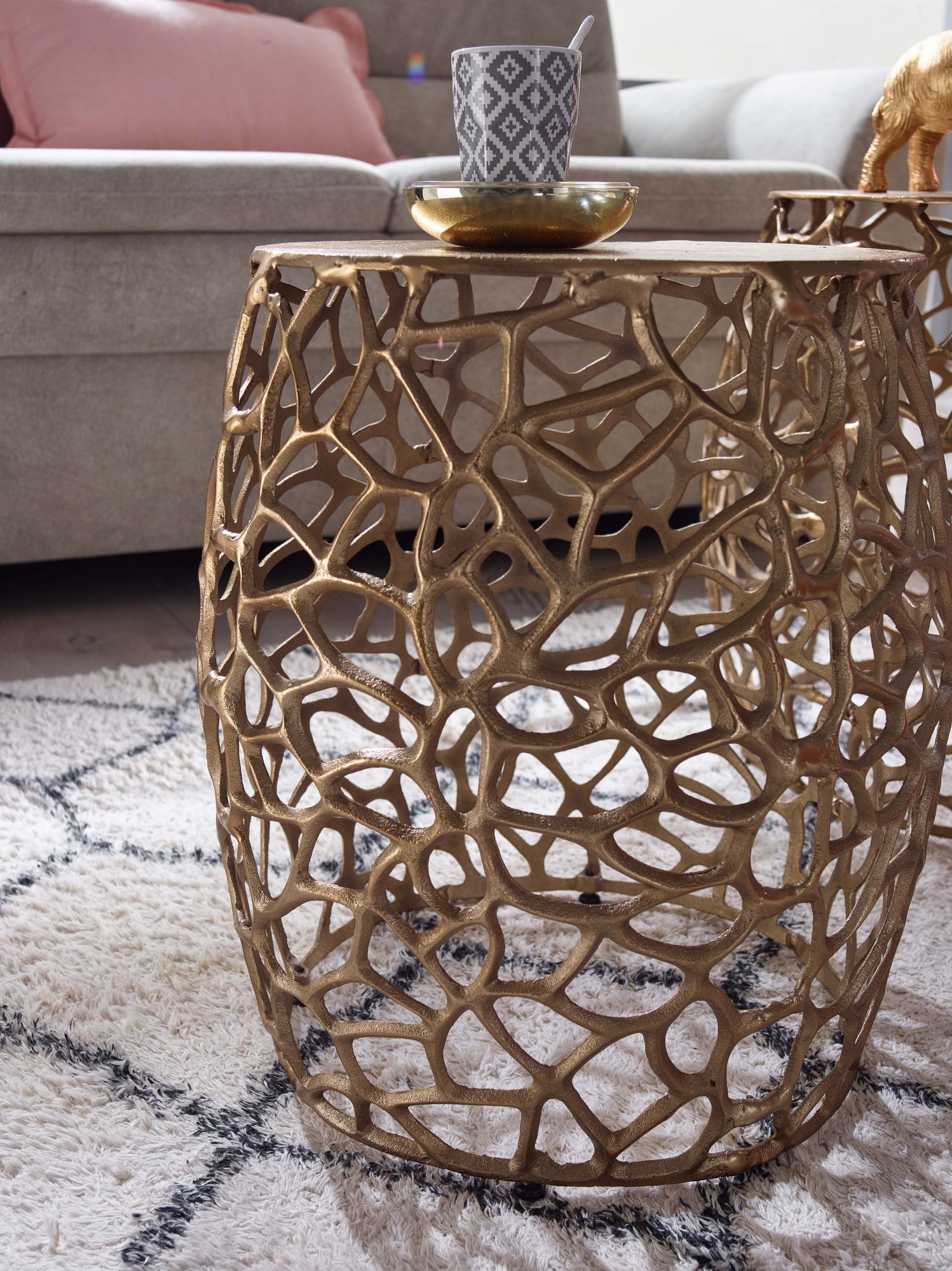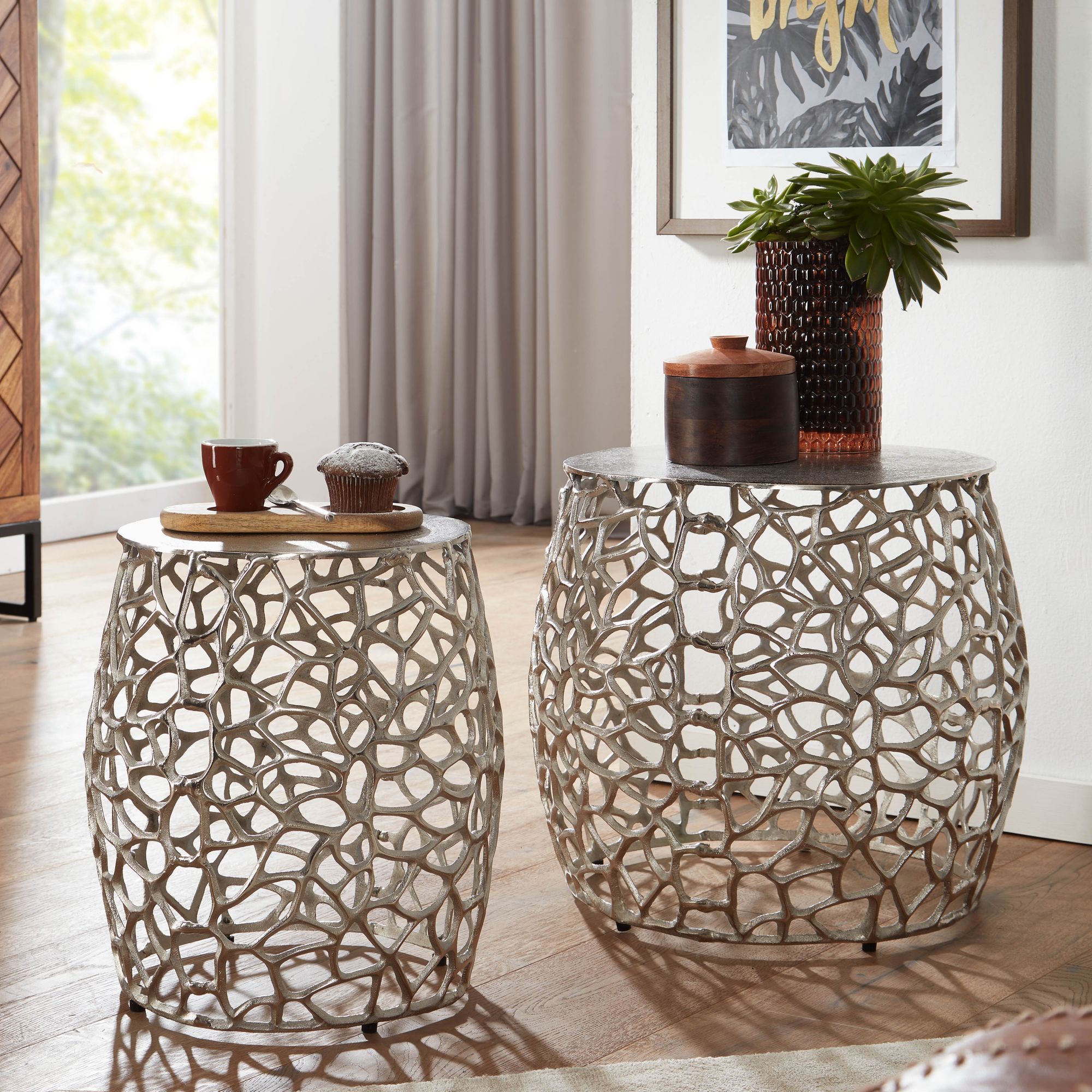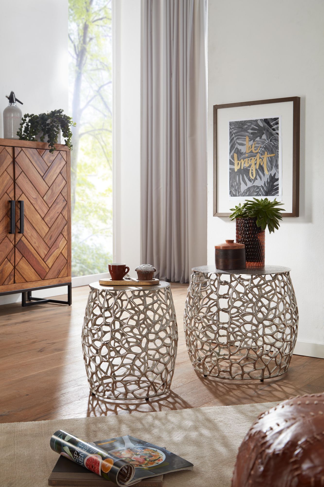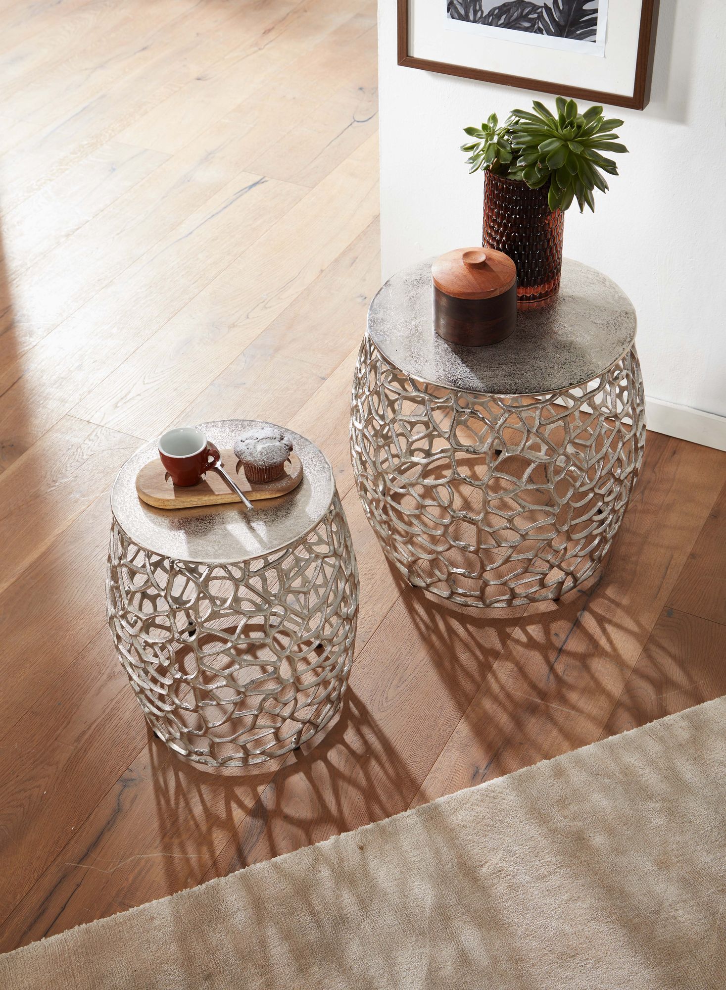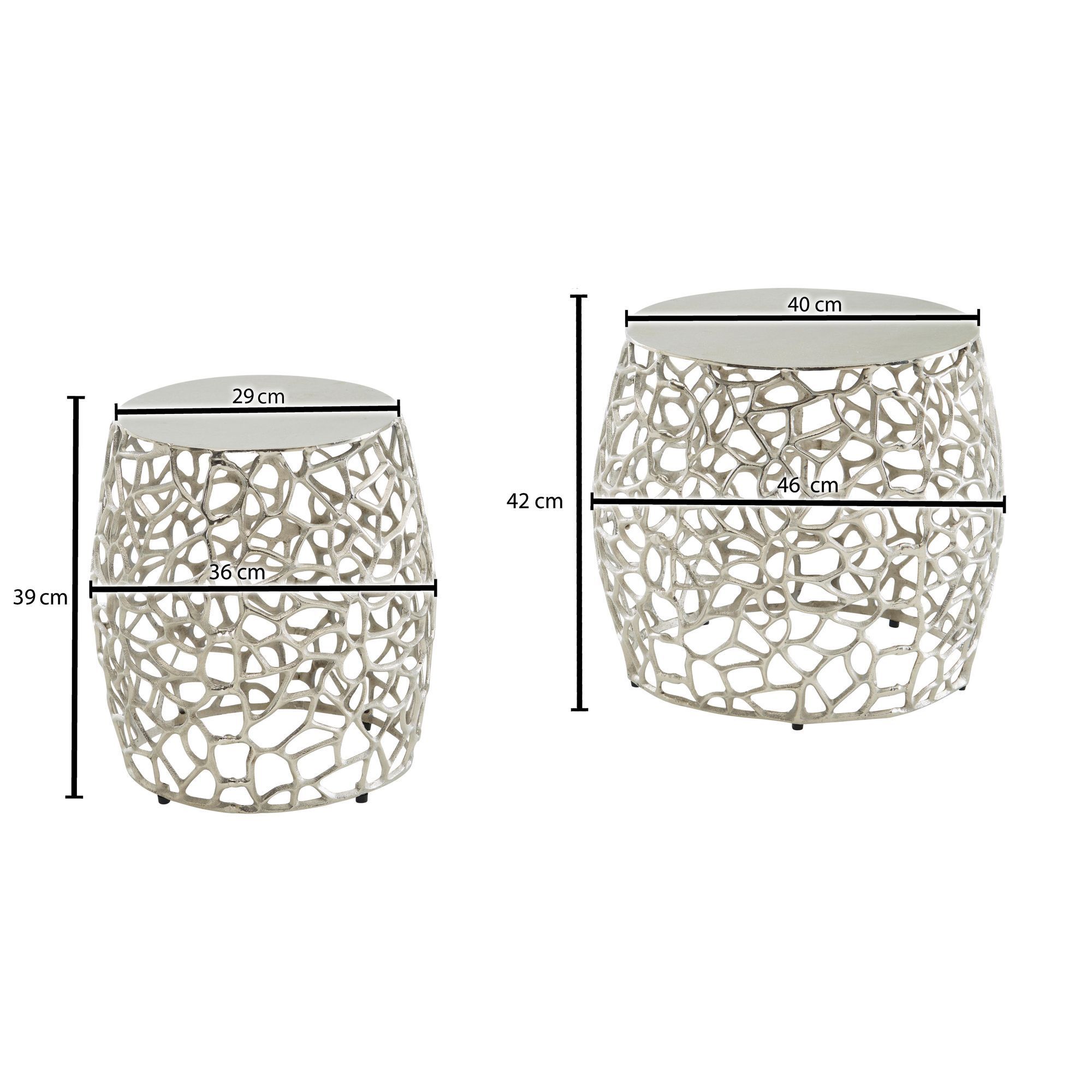 FineBuy Beistelltisch 2er Set Aluminium Design Satztisch Metall Rund, Wohnzimmertisch Couchtisch Ast-Struktur Modern, Sofatisch 2-teilig Wohnzimmer Dekotisch
