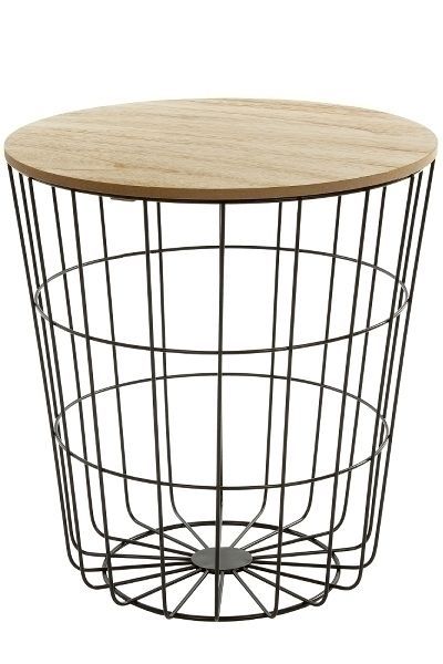 Beistelltisch Fritz 40 x 40 x 42cm Metallkorb schwarz mit abnehmbarer MDF-Platte