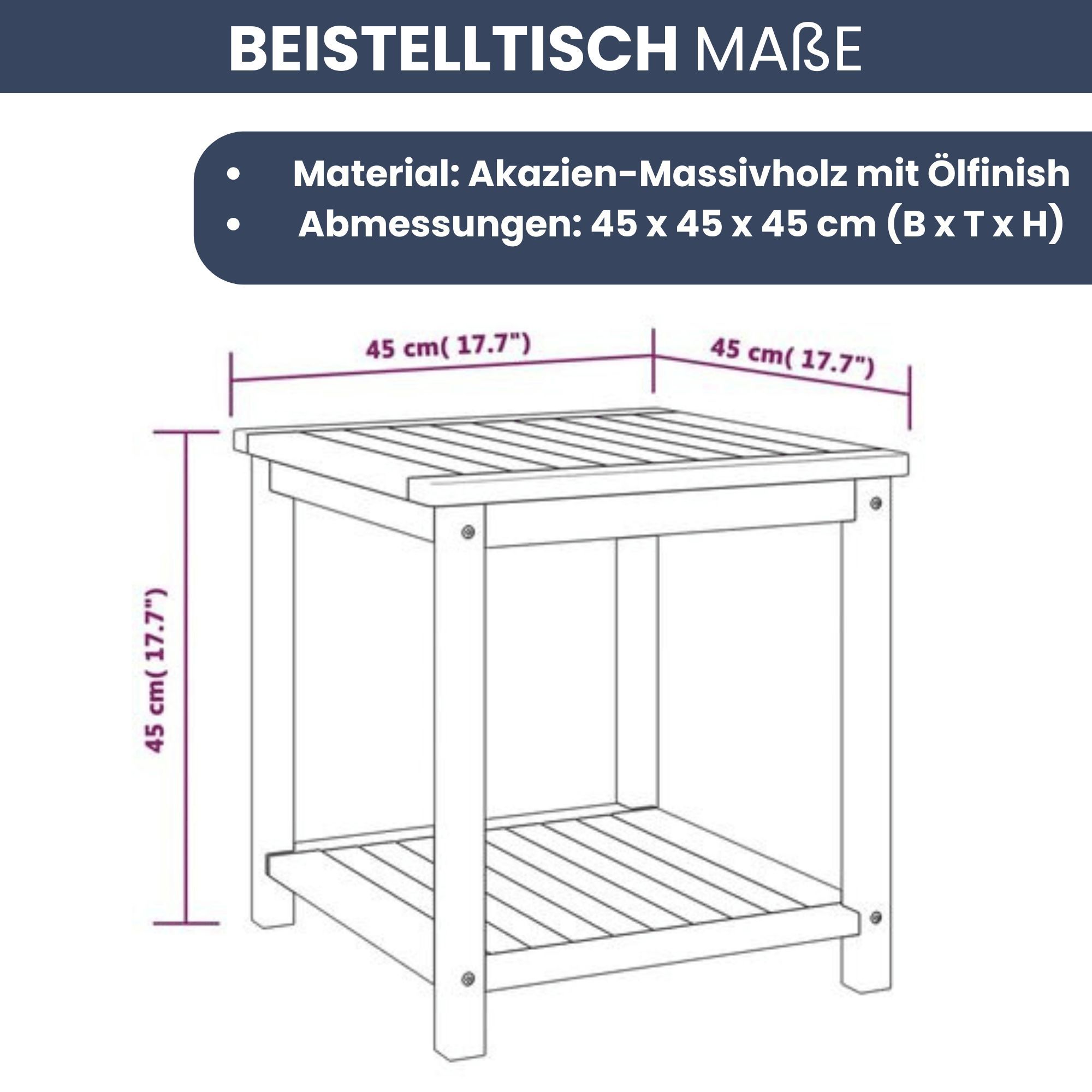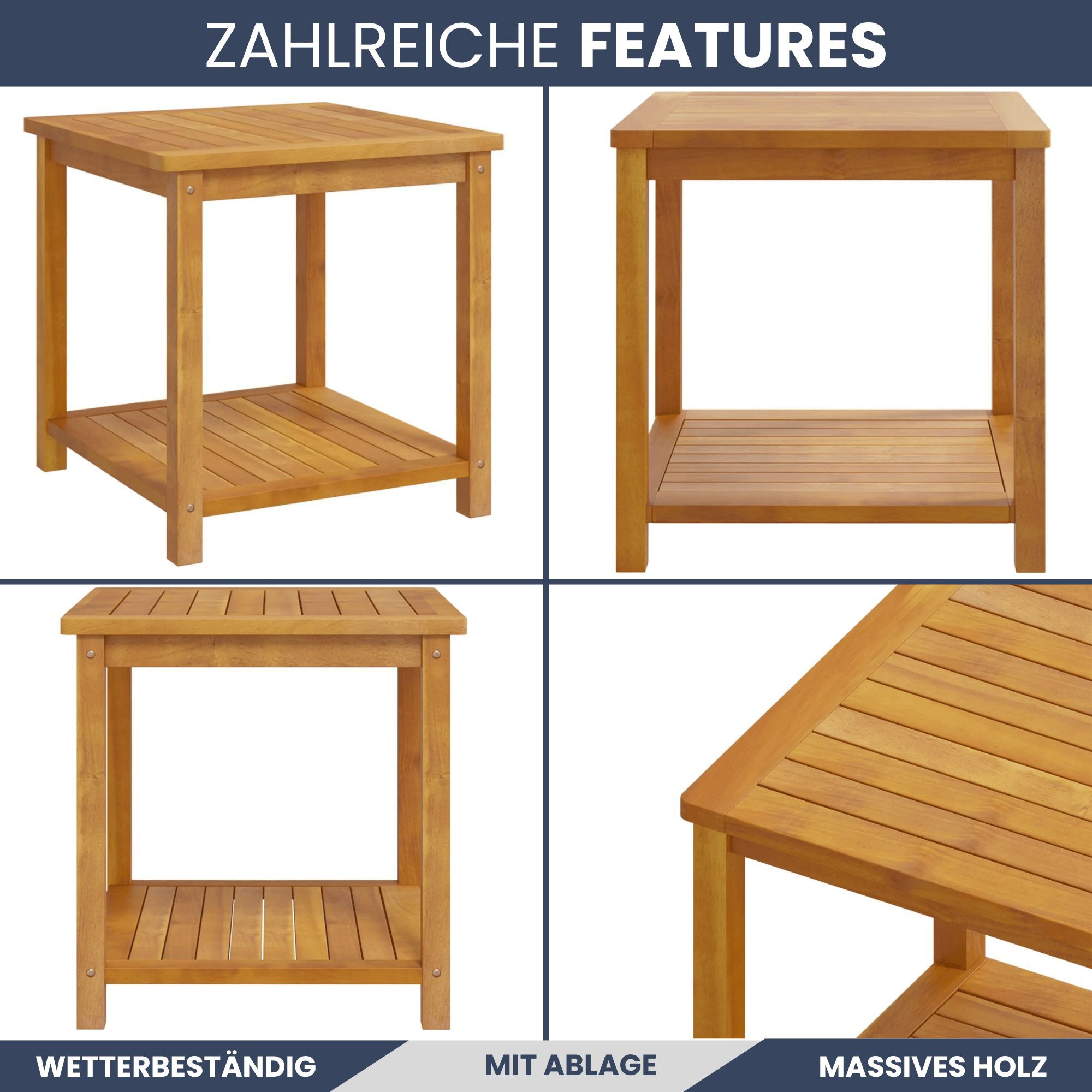 Beistelltisch Holz EMMI Massivholz 45x45x45cm Couchtisch Akazie Beistelltisch Couch