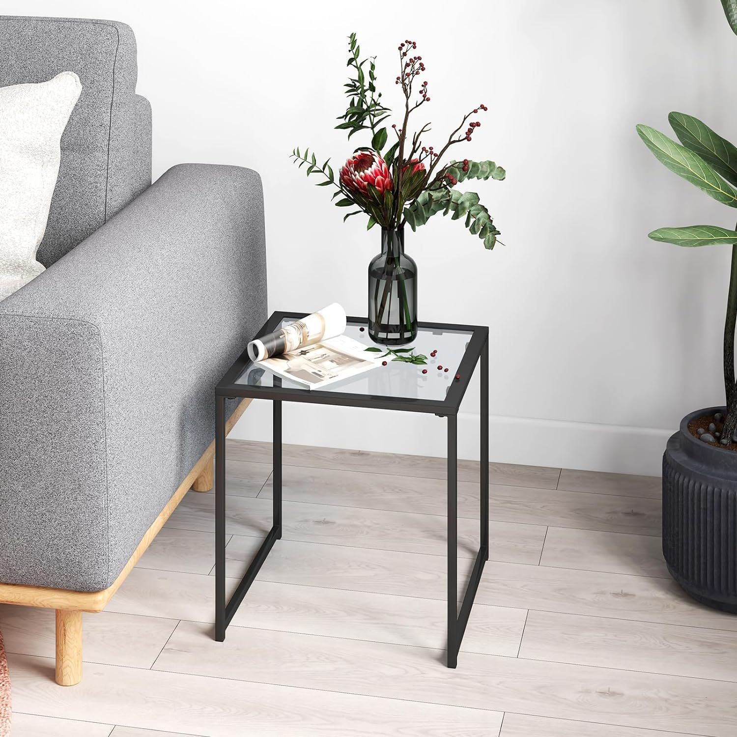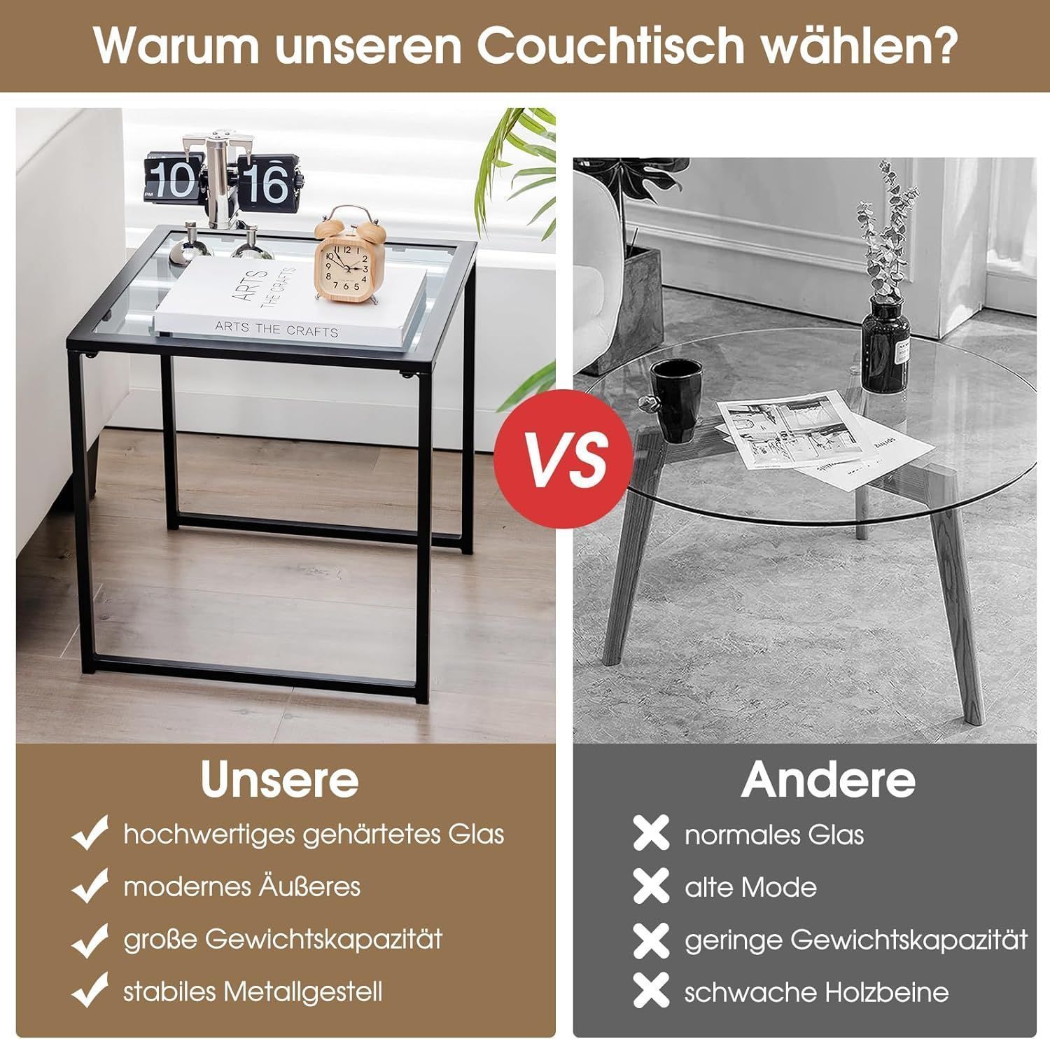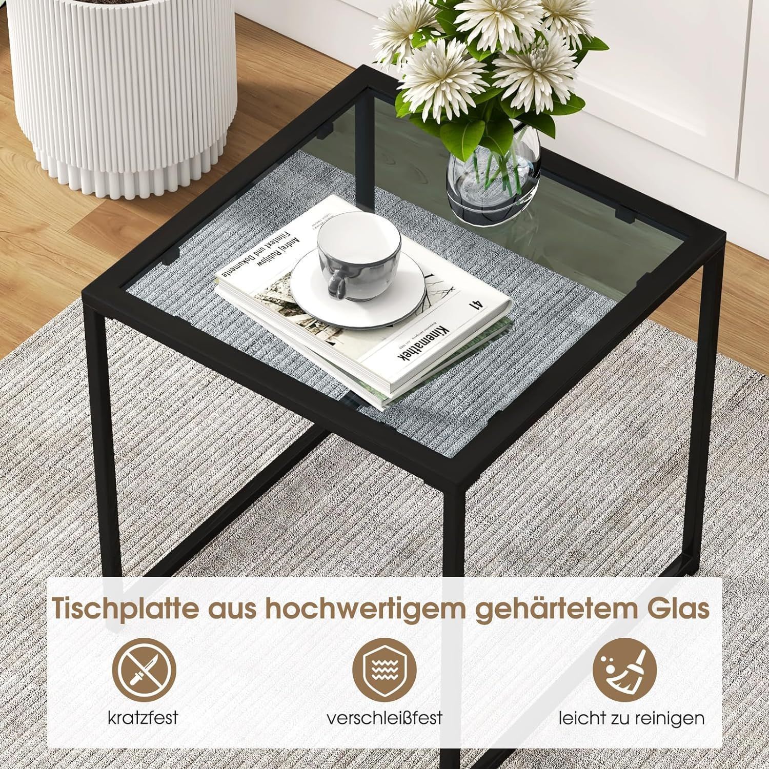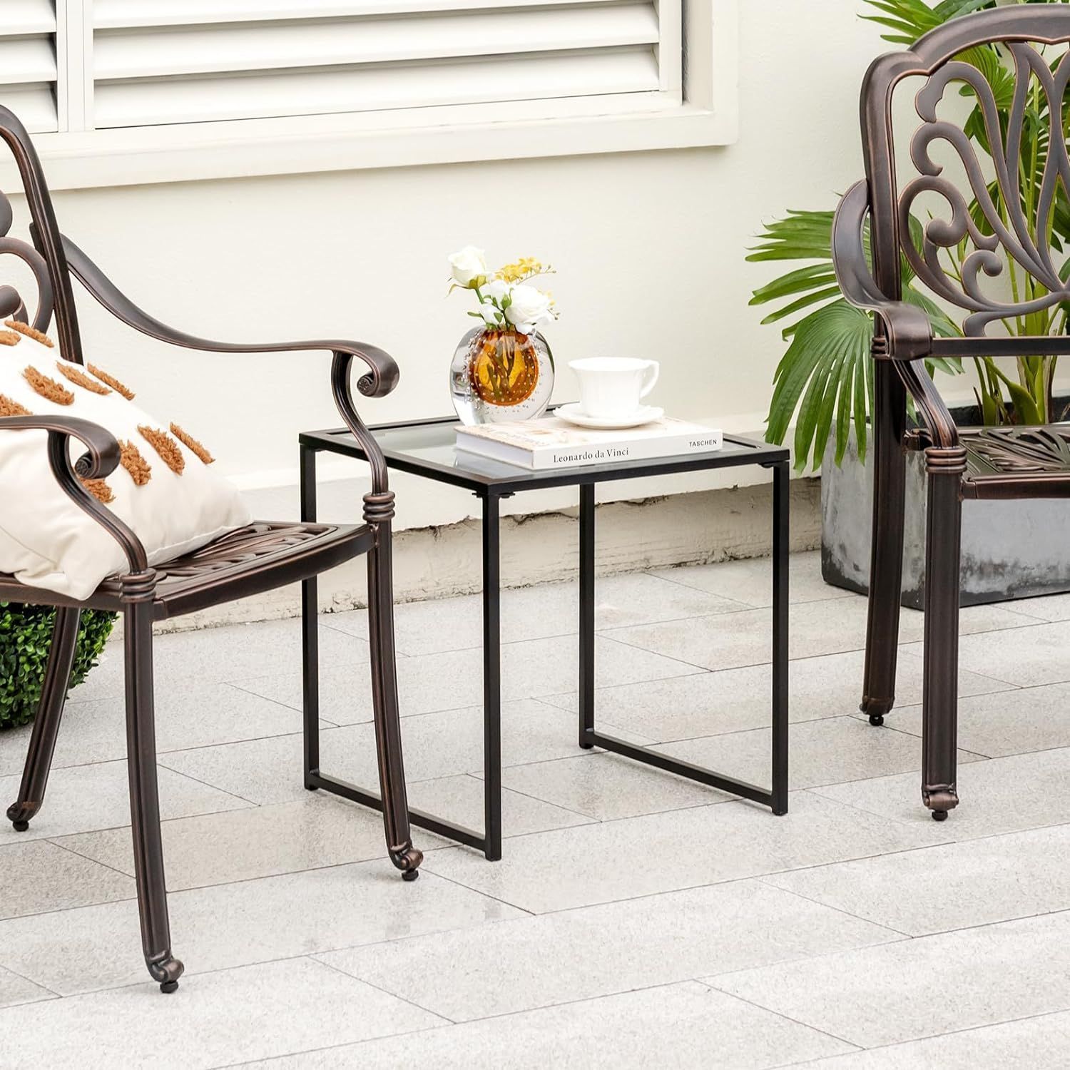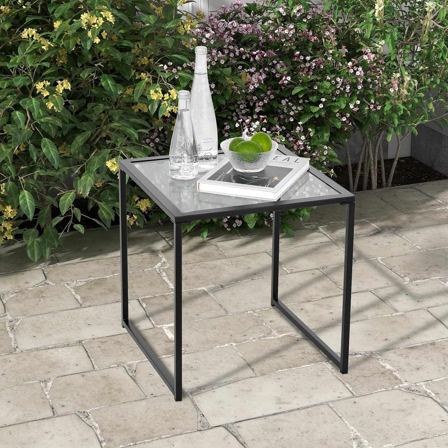 Beistelltisch, Kleiner Gartentisch, Balkontisch mit Tischplatte aus gehörtetem Glas