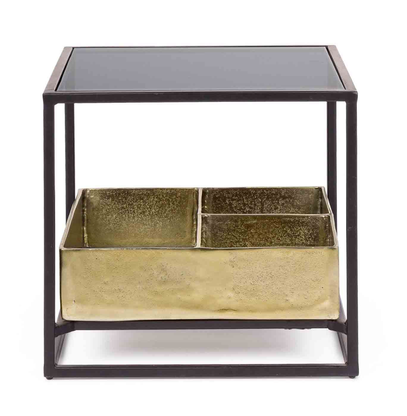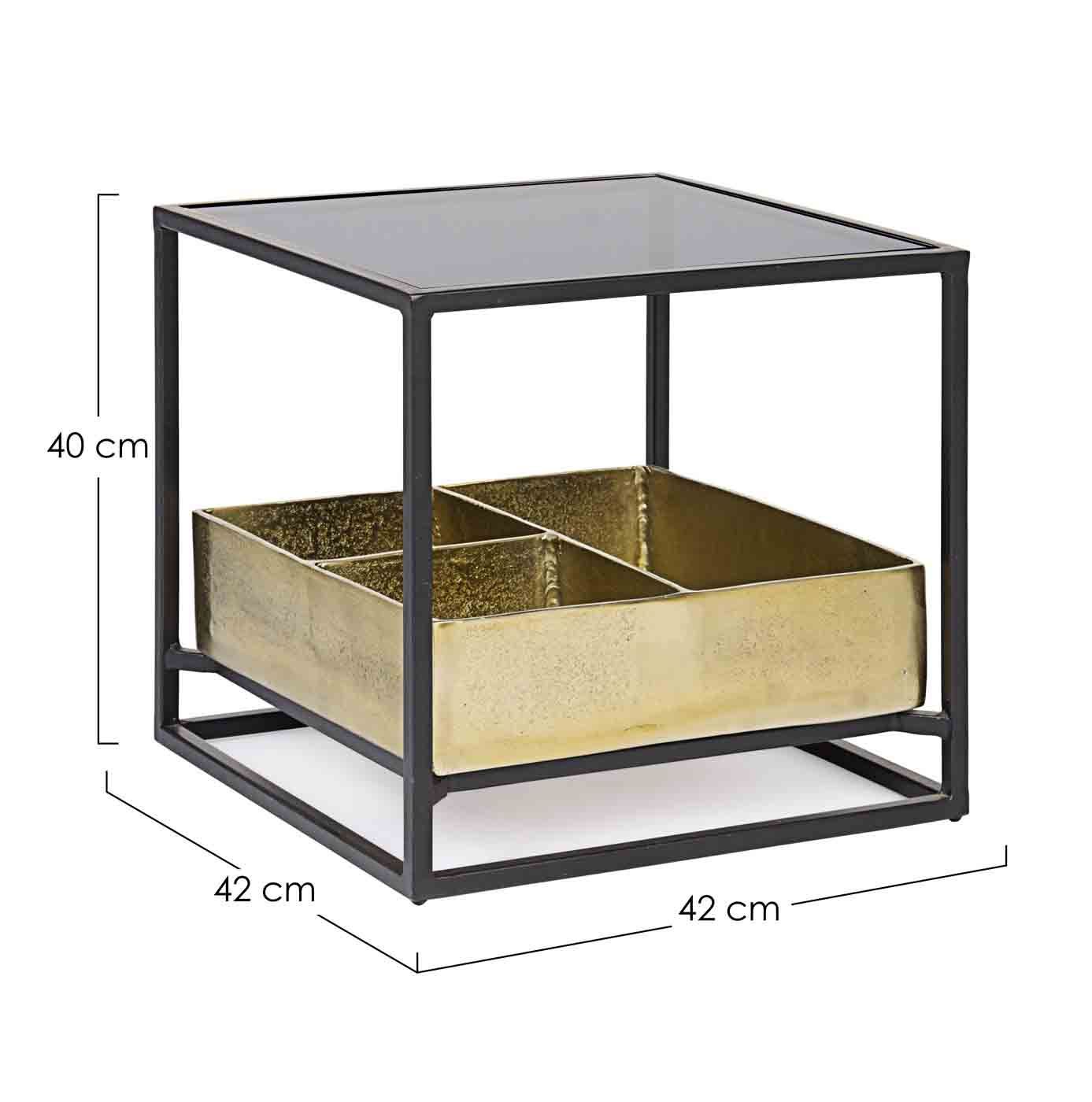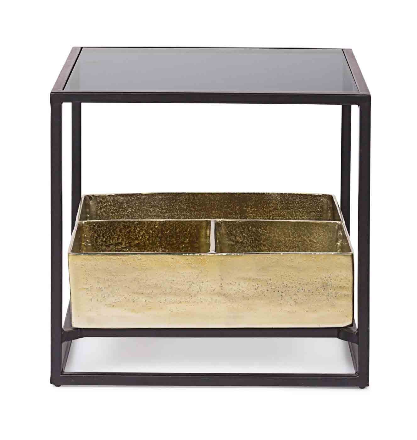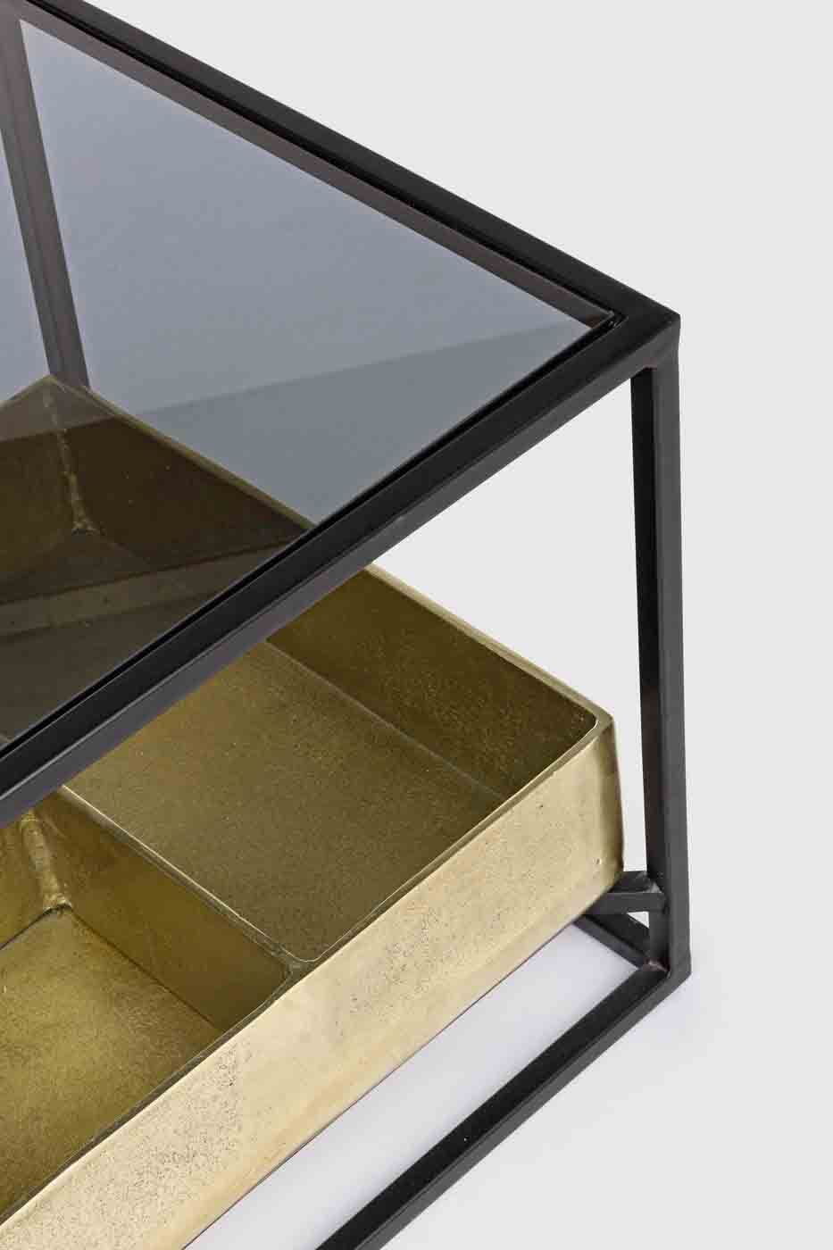 Beistelltisch Mavila aus Stahl und Glas, modern, schwarz gold, mit praktischem