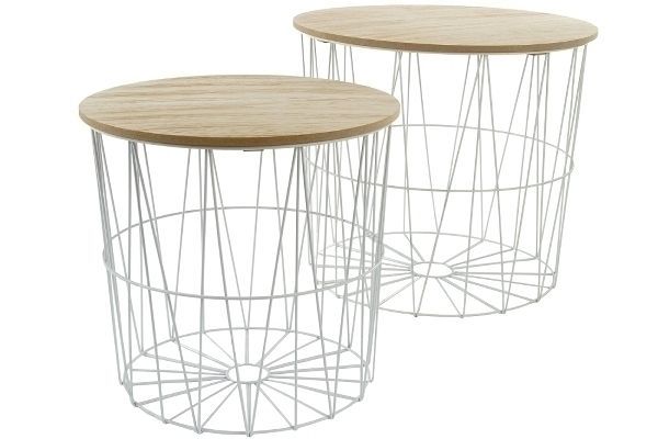Beistelltisch Max 2er Set 46 x 46 x 40 cm Metallkorb mit abnehmbarer MDF-Platte