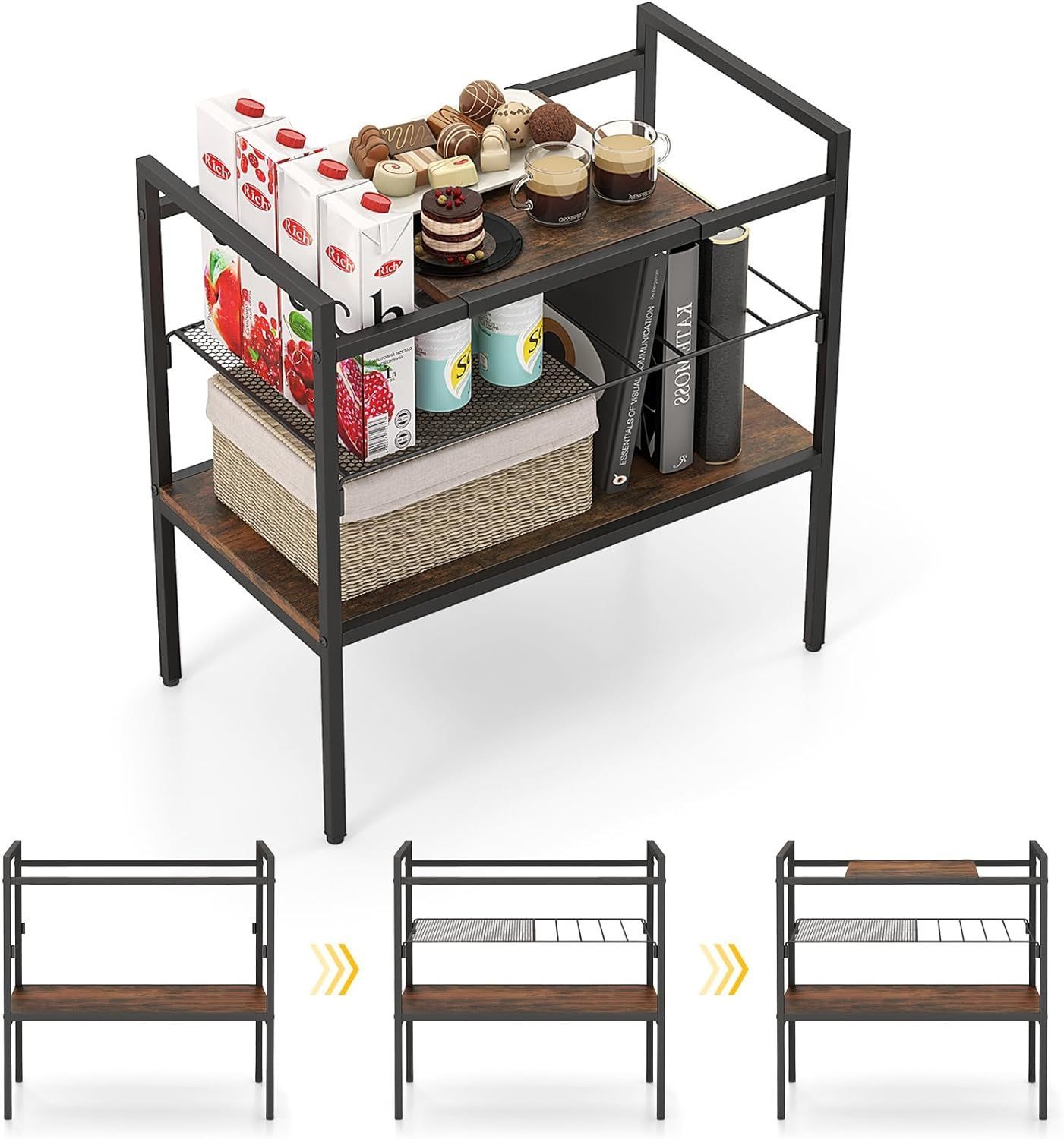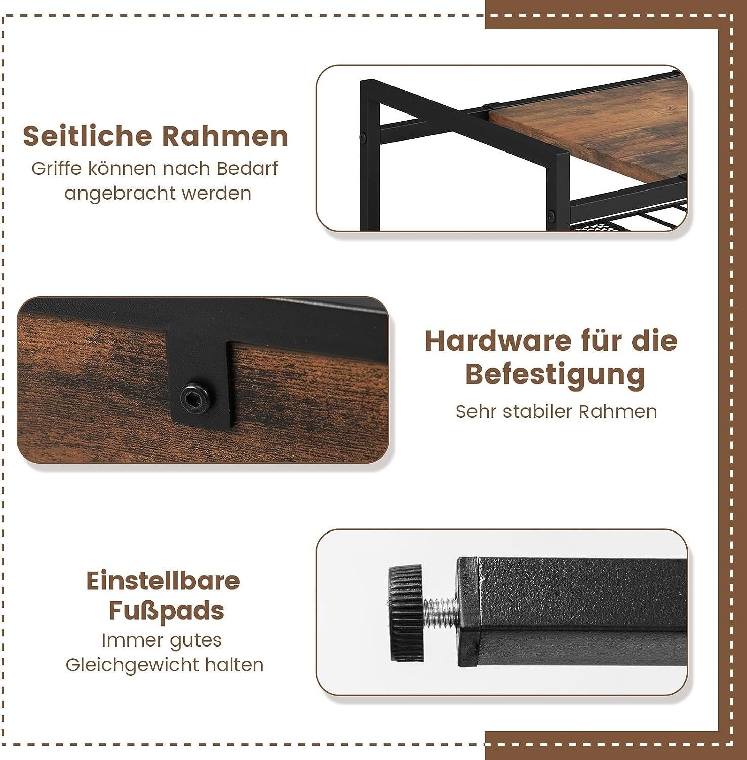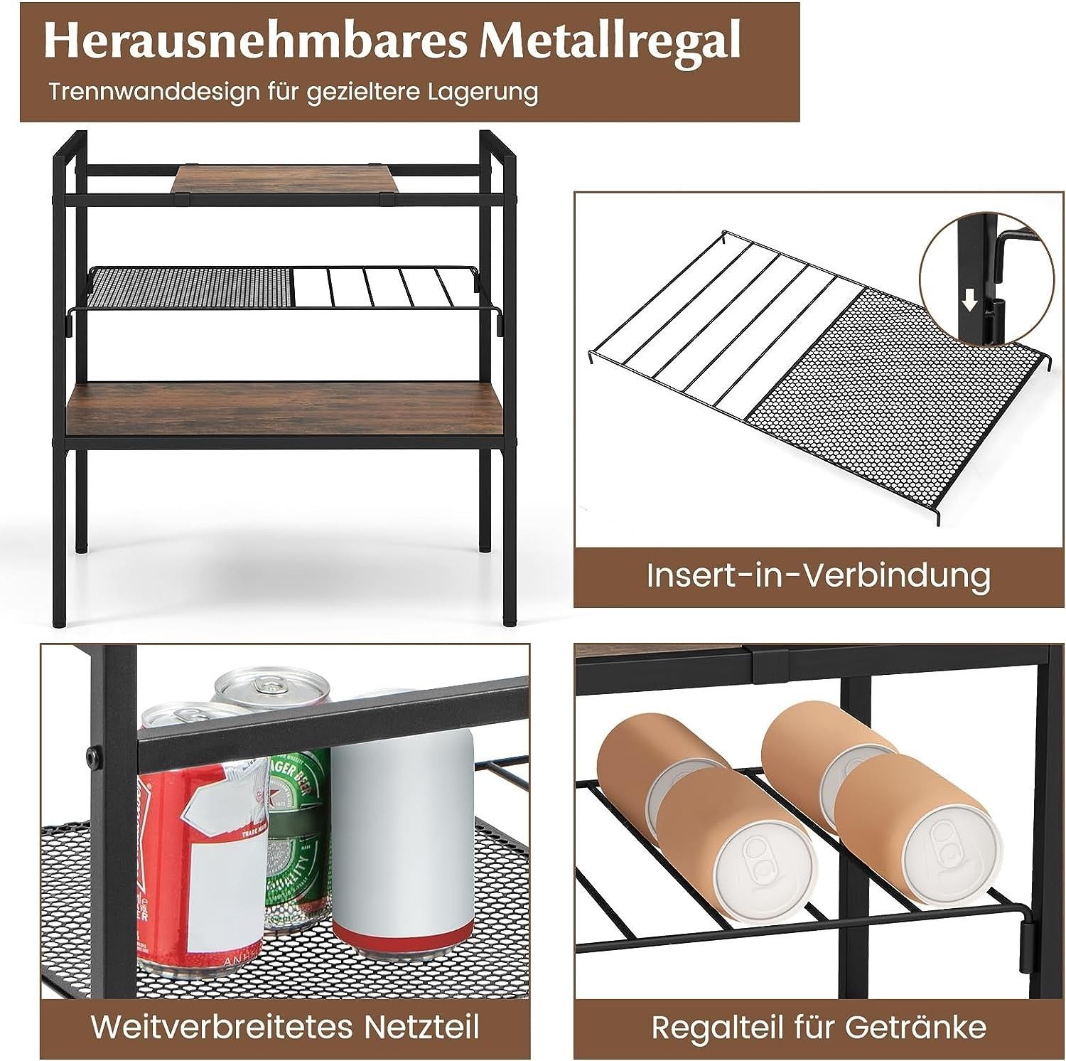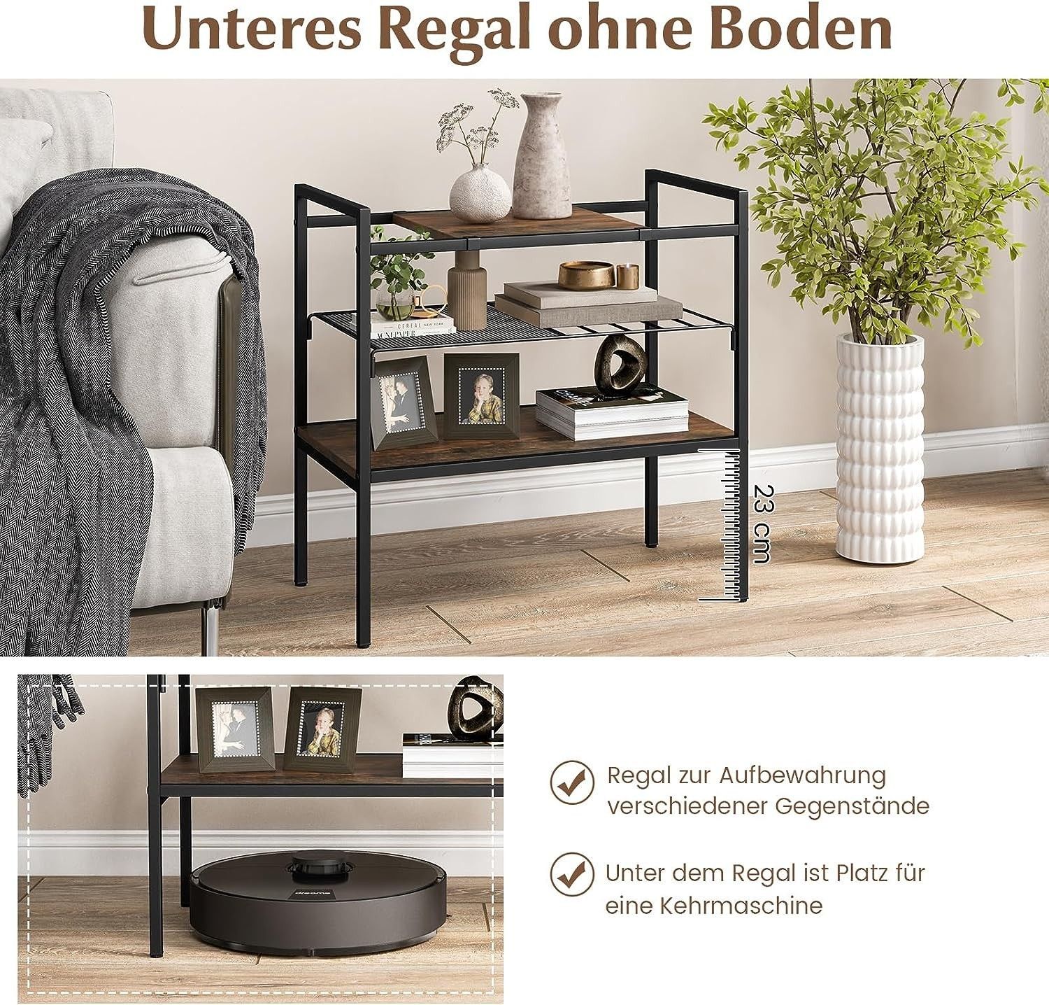 Beistelltisch mit Abnehmbarer Platte und Gitterablage, Sofatisch mit Metallrahmen