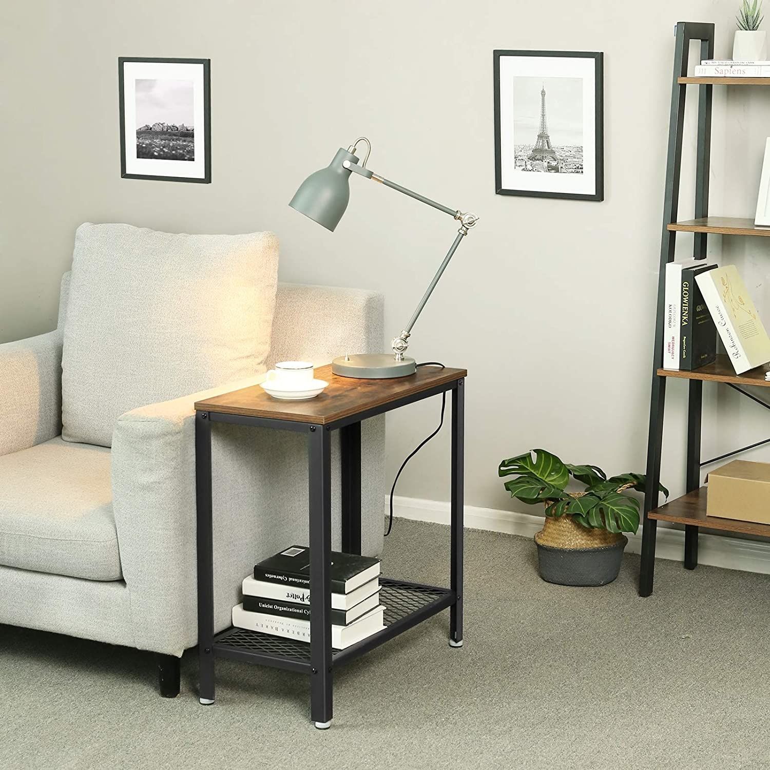 Beistelltisch mit Gitterablage Industriedesign Vintage braun schwarz - Salonkonso