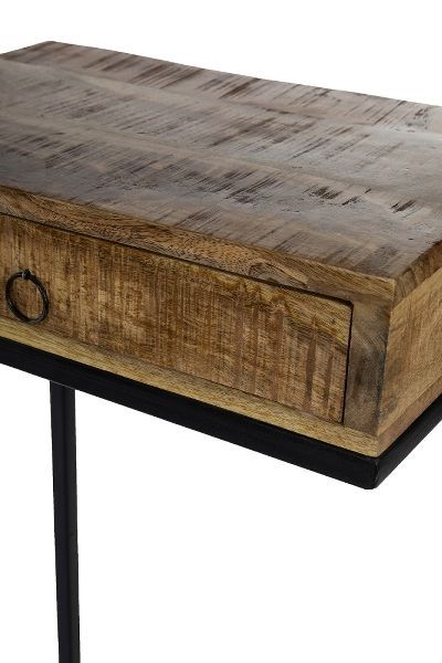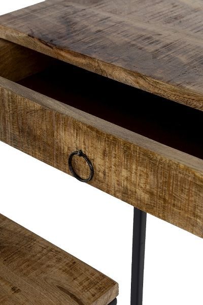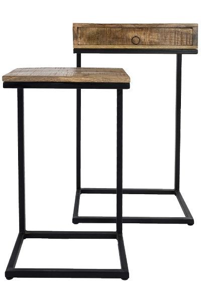 Beistelltisch Shirin 2er Set Holz Natur mit Schublade und Metallgestell Schwarz