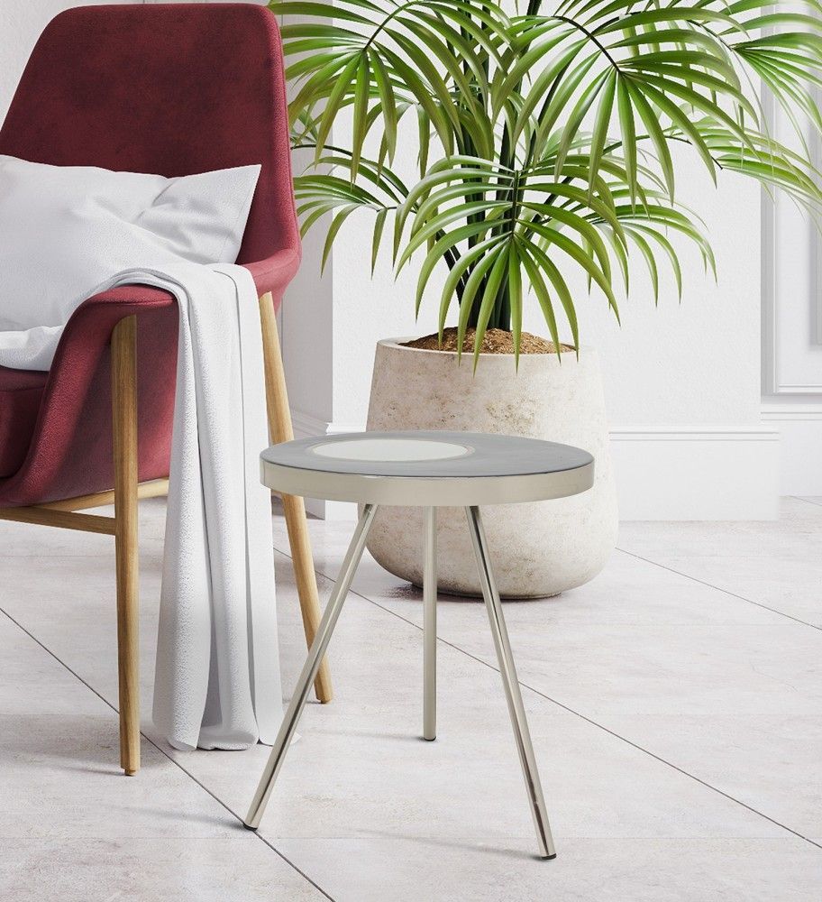 Beistelltisch Couchtisch Nachttisch Metall silber design retro rund Tabletttisch