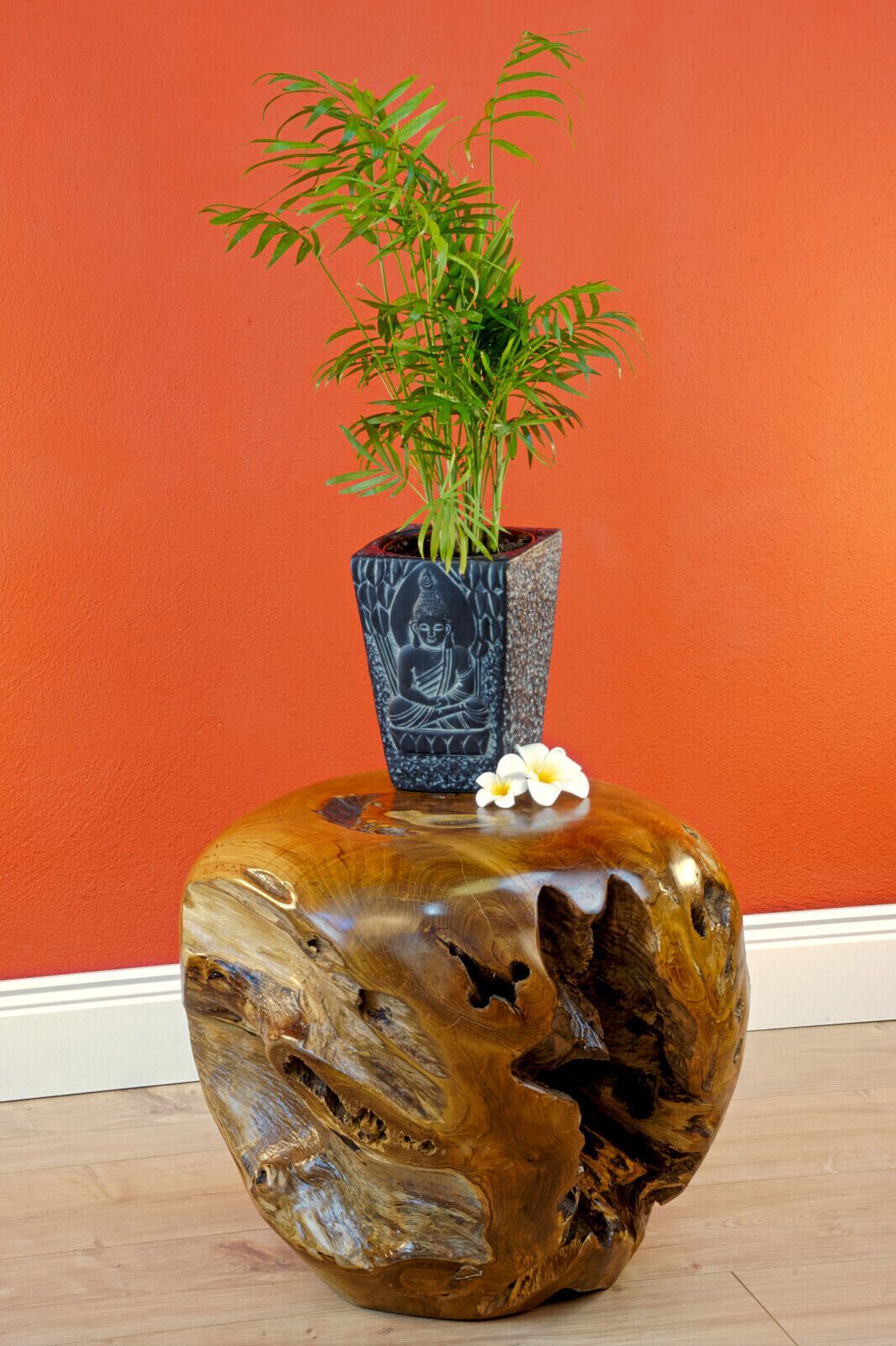 Beistelltisch Wurzelholz Kugel 40 50 cm Holz Wohnzimmer Tisch Blumenhocker rund
