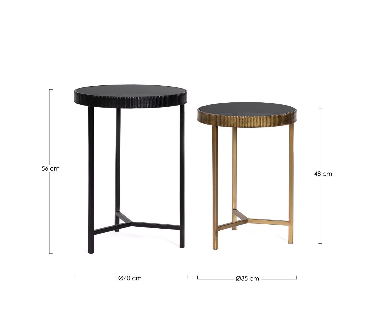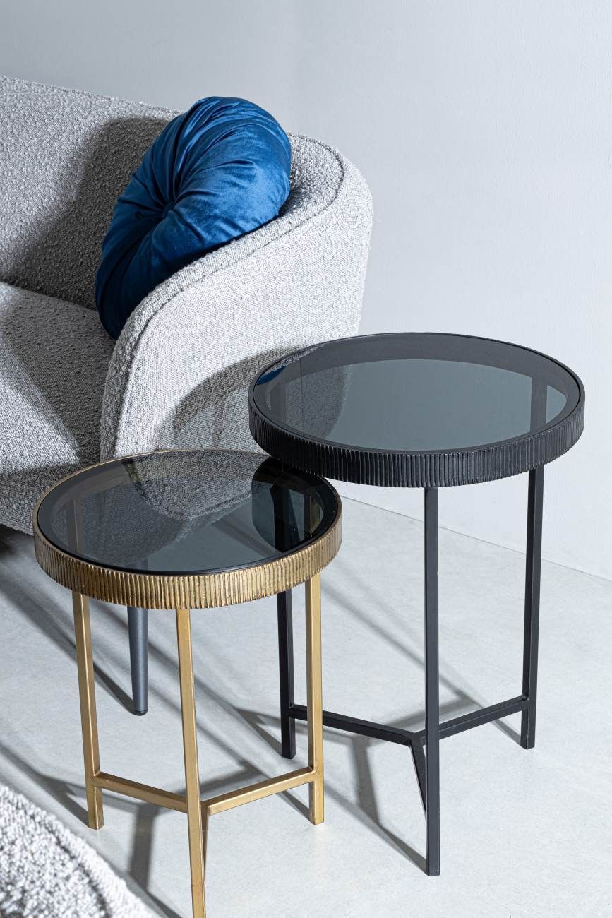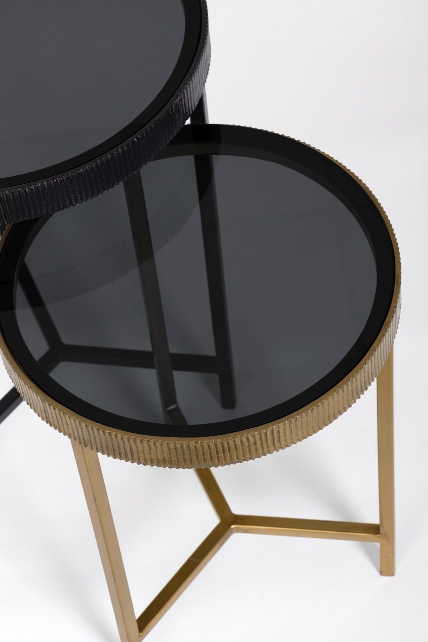 Beistelltisch Yamir 2er-Set, Metall und Glas, modern rund, schwarz gold für Dein