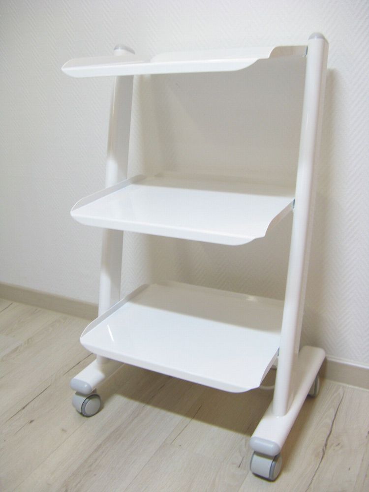 Ein praktischer Beistellwagen / Gerätewagen für medizinische Geräte im Behandlungszimmer. Durch seine Doppel-Lenkrollen ist er flexibel und leicht zu bewegen. Das Cart ist antiseptisch lackiert. Der umlaufende Rand sorgt für sicheren Halt der medizinischen Geräte.