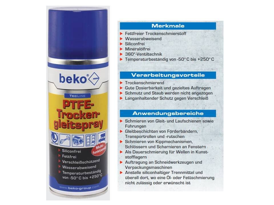 beko beko PTFE Trockengleitspray 400 ml Schmiermittel Gleitspray 298-6-400
