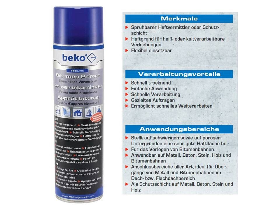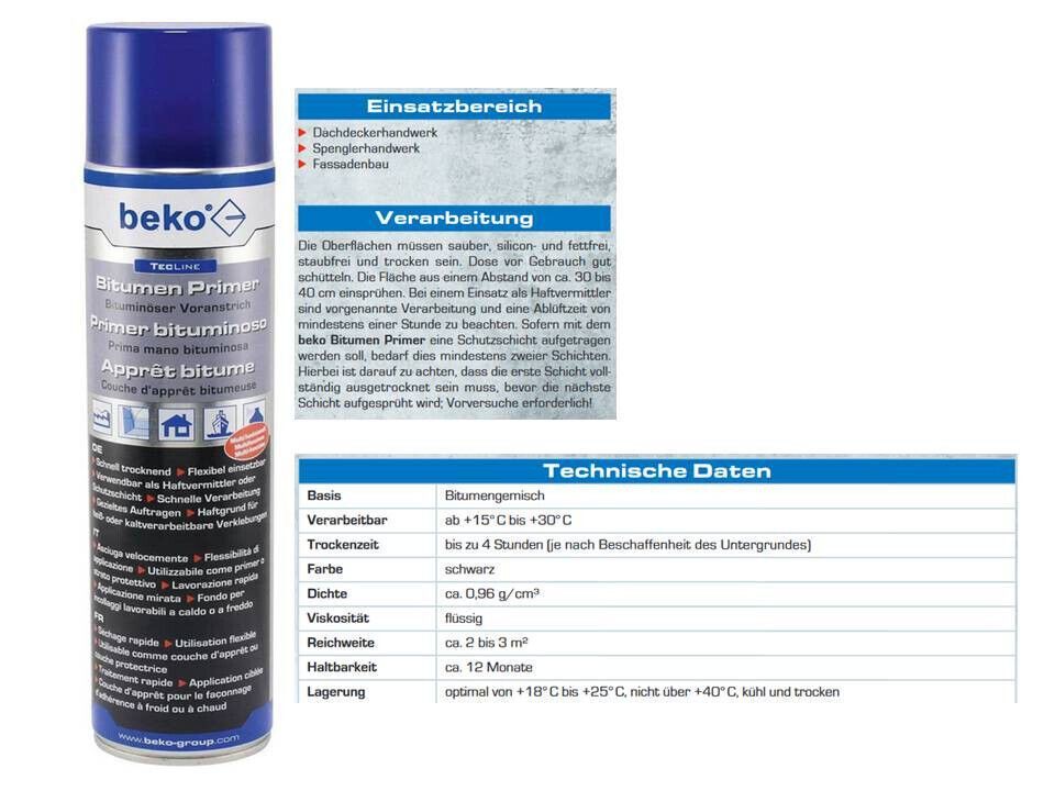 beko beko TecLine Bitumen Primer 600 ml Bituminöser Voranstrich Haftgrund Grundierung