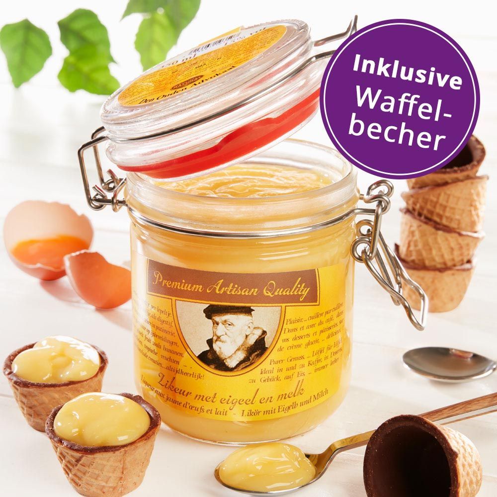 Belgischer Eierlikör zum Löffeln und Waffelbecher im Set