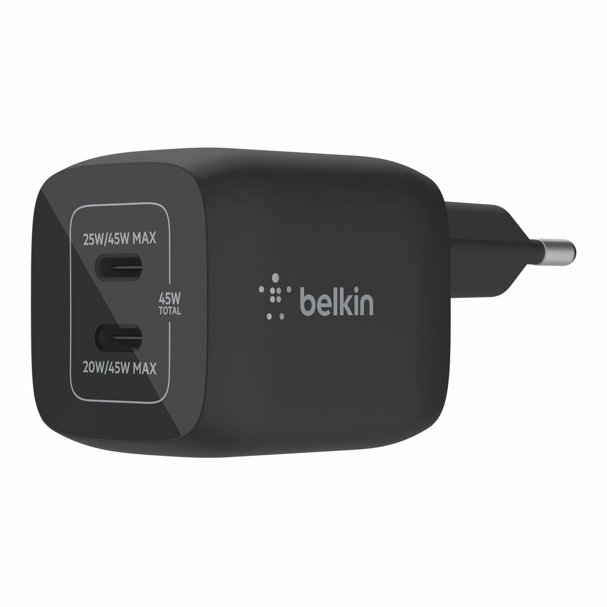 Belkin 45W Dual USB-C GaN Ladegerät Power Deliver, PPS, blk