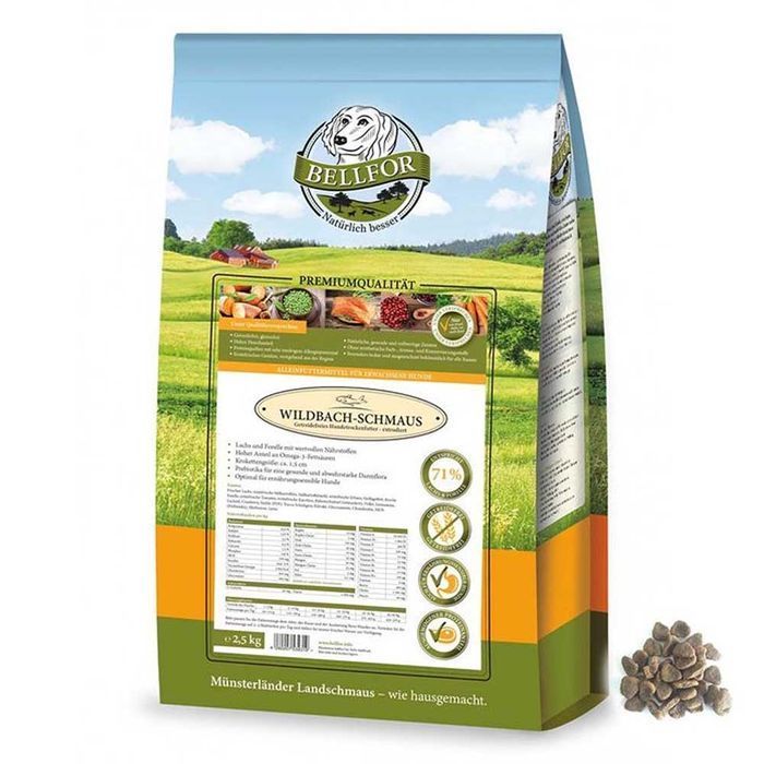 Bellfor Wildbach-Schmaus 7,5kg getreidefreies Futter mit Fisch für Hunde