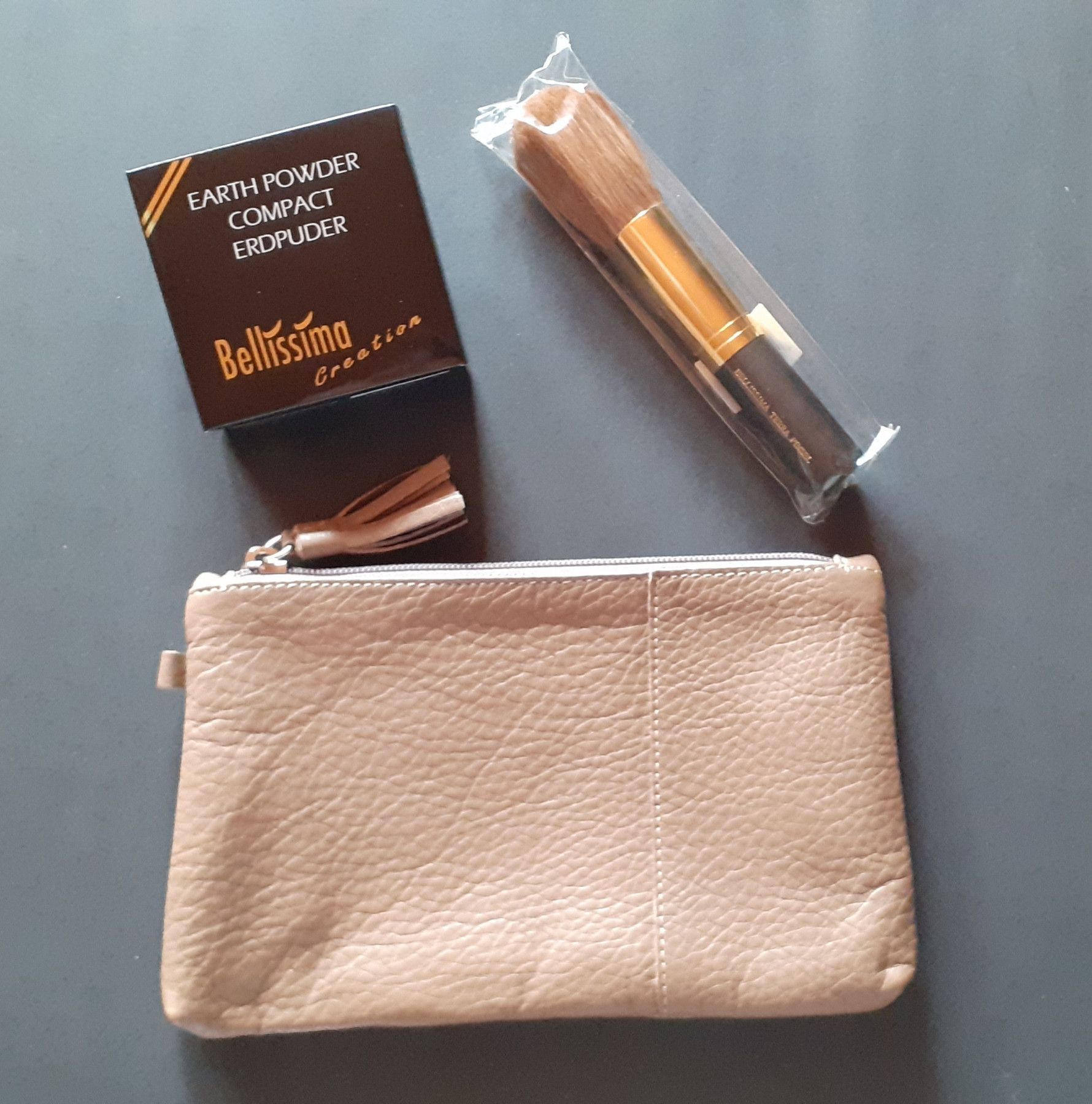 Gift Set Geschenk-Set Inhalt: Bellissima Earth Powder Compact in Spiegeldose (Farbe des Pudersteins nach Wahl) org. Terra-Puderpinsel echte handgehähte Ledertasche/Mini-Clutch/Kosmetiktasche mit Reissverschluß Ein edles Geschenk-Set zum Verschenken oder selber behalten. Edles italienisches Handschuhleder, Markenreissverschluß und hochwertiges Futter verleihen der Tasche einen unwiederstehlichen Reiz. Alle Artikel dieses Geschenksets sind in der EU nach hohem Standart produziert.