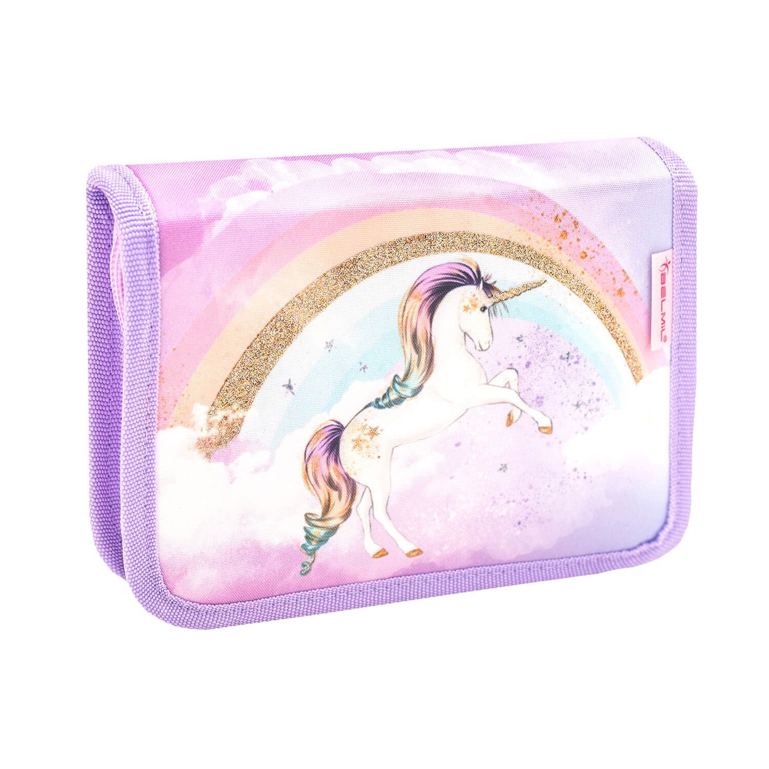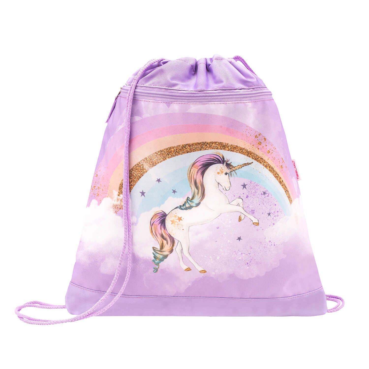 Belmil Mini-Fit ergonomisches Schulranzen-Set 4-teilig "Rainbow Unicorn" mit Brust